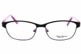 Montura de gafas marca PEPE JEANS con forma Clubmaster estilo de marco Media Montura, de colores Morado, Negro