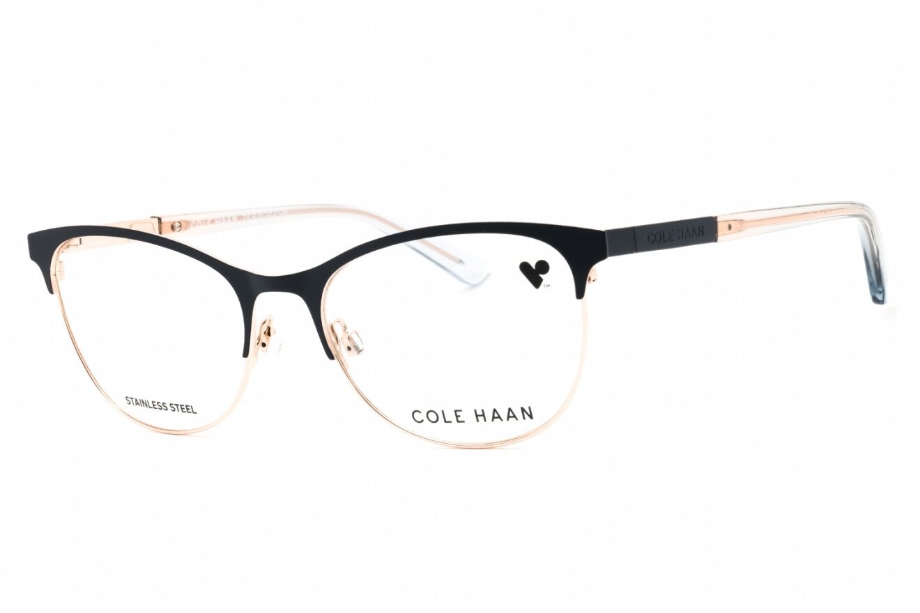 Montura de gafas marca COLE HAAN con forma Agatada estilo de marco Media Montura, de colores Negro, Oro rosa