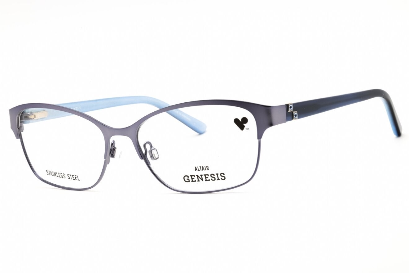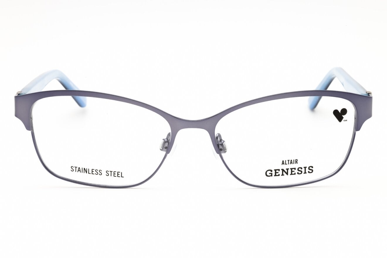 Montura de gafas marca GENESIS con forma Clubmaster estilo de marco Media Montura, de colores Gris, Azul