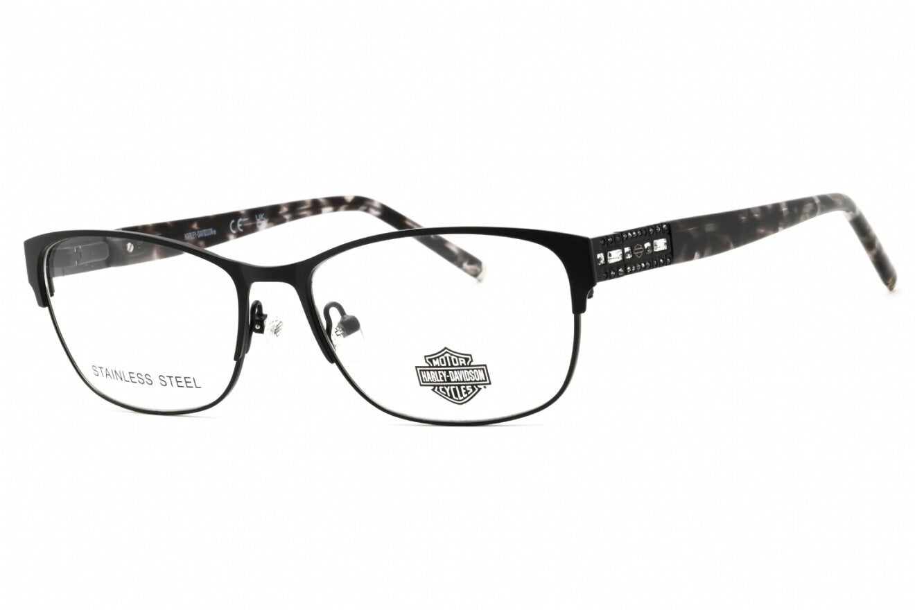 Montura de gafas marca HARLEY DAVIDSON con forma Clubmaster estilo de marco Media Montura, de colores Negro, Gris