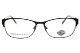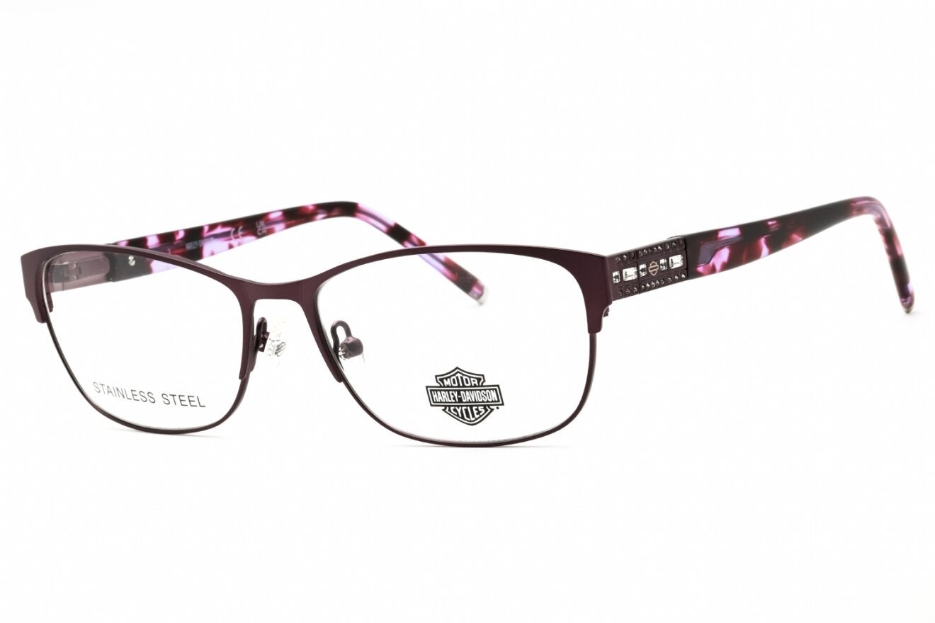 Montura de gafas marca HARLEY DAVIDSON con forma Clubmaster estilo de marco Media Montura, de colores Morado, Negro