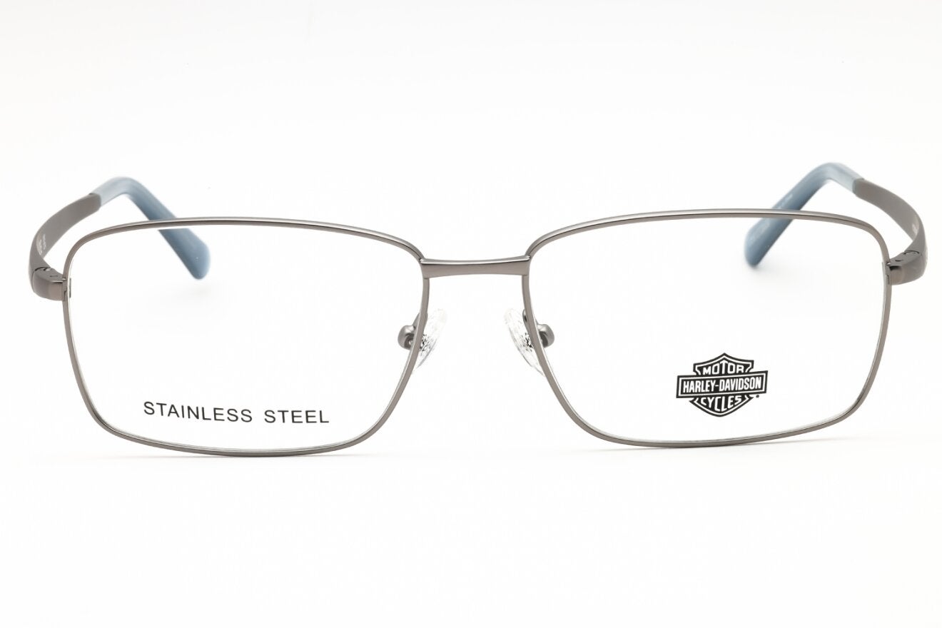 Montura de gafas marca HARLEY DAVIDSON con forma Rectangular estilo de marco Al aire, de colores Gris, Plata