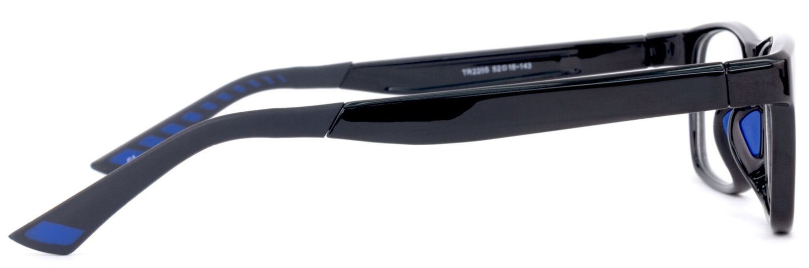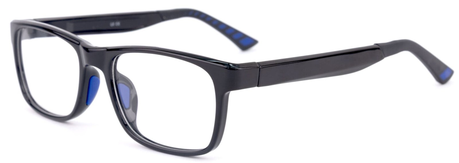 Montura de gafas con forma Rectangular estilo de marco Completo, de colores Negro, Azul con soporte de nariz de puente anatómico
