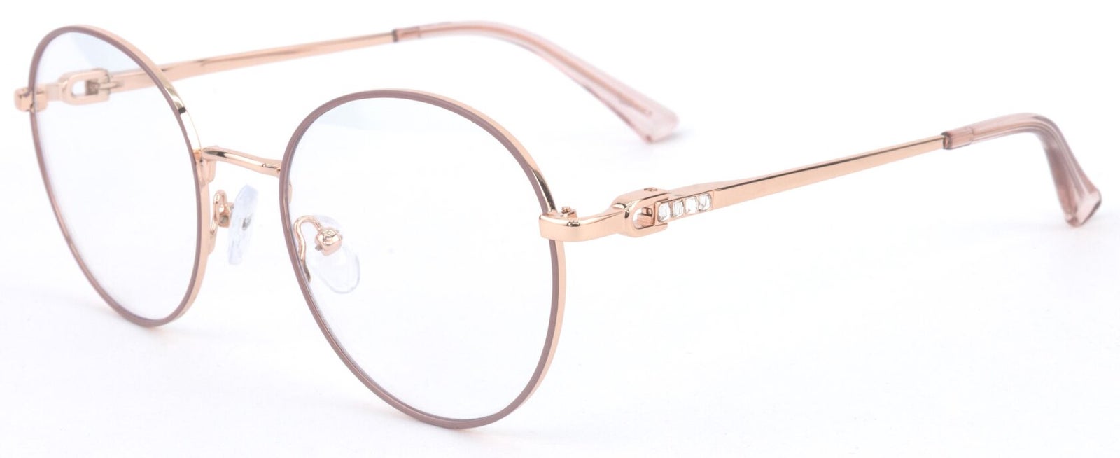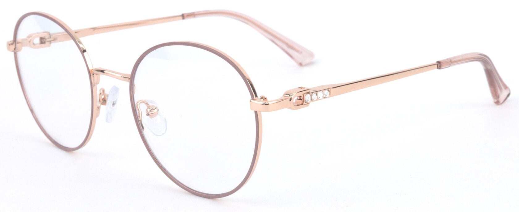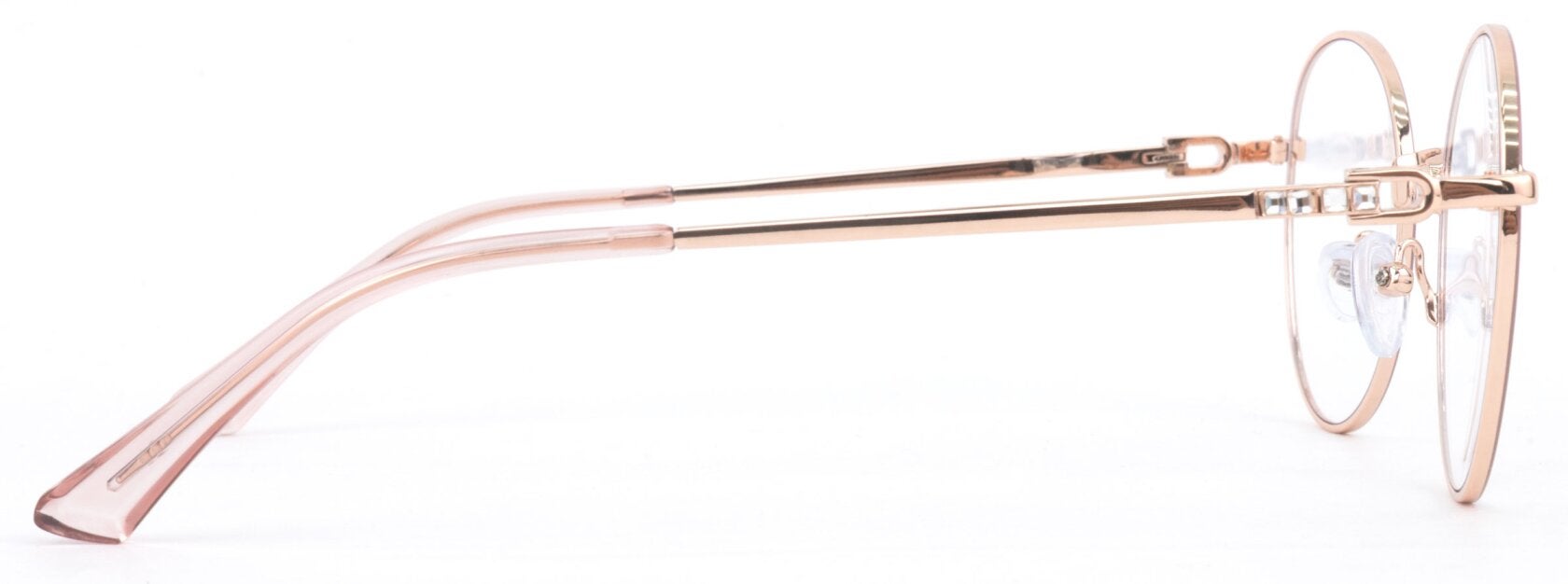 Montura de gafas con forma Redonda estilo de marco Completo, de colores Dorado, Palo rosa con soporte de nariz de plaquetas