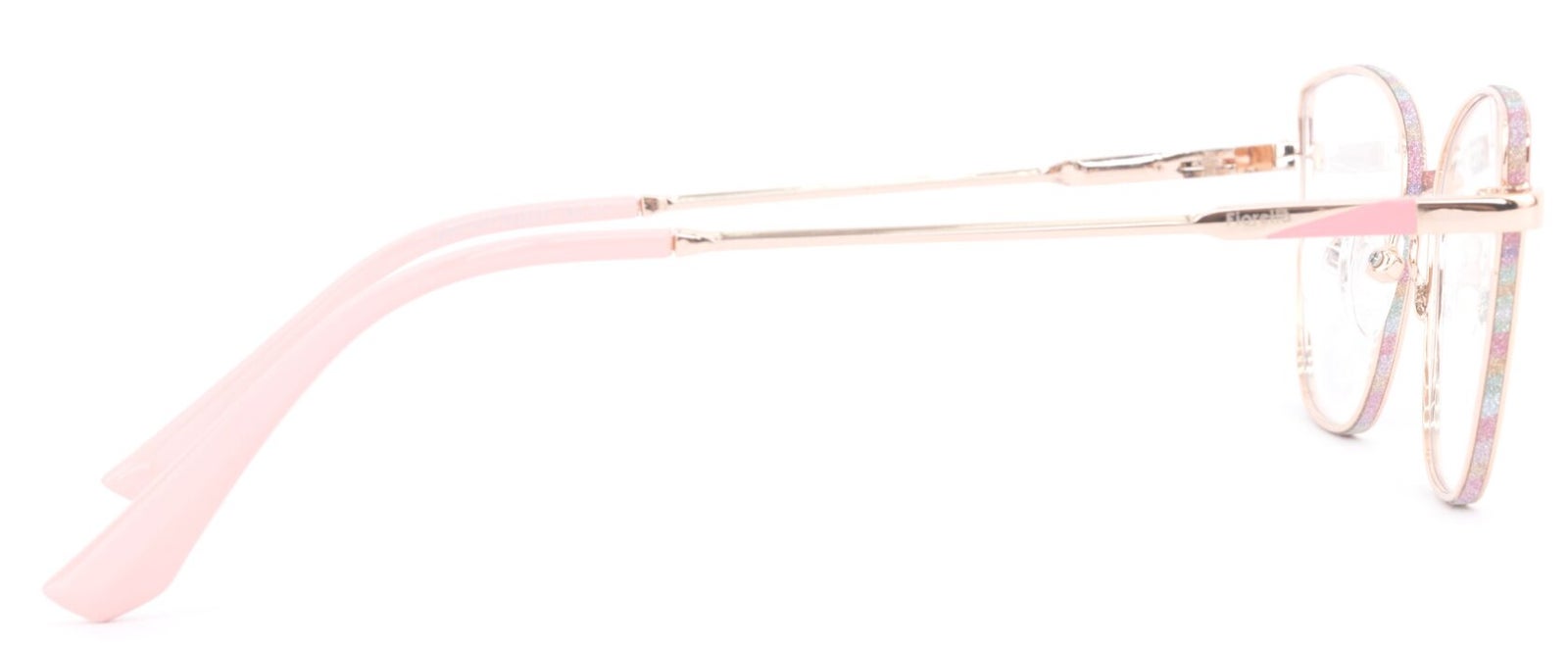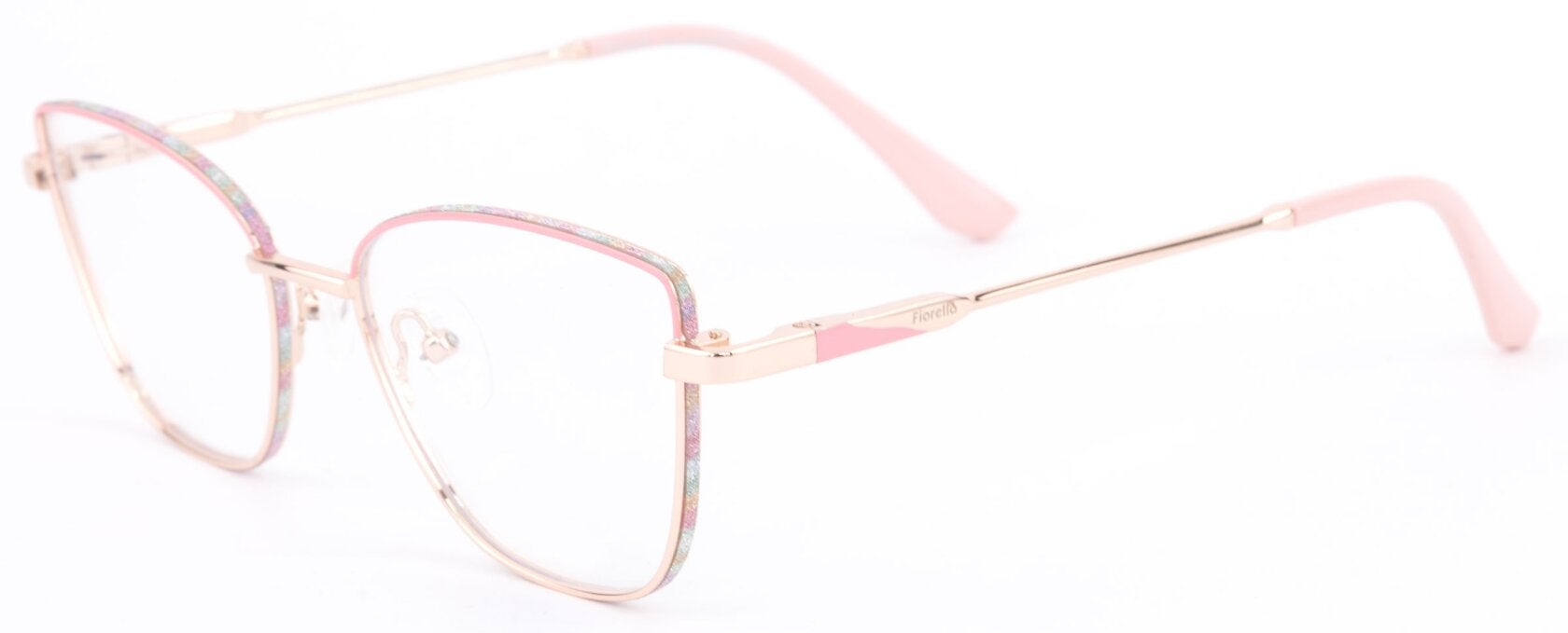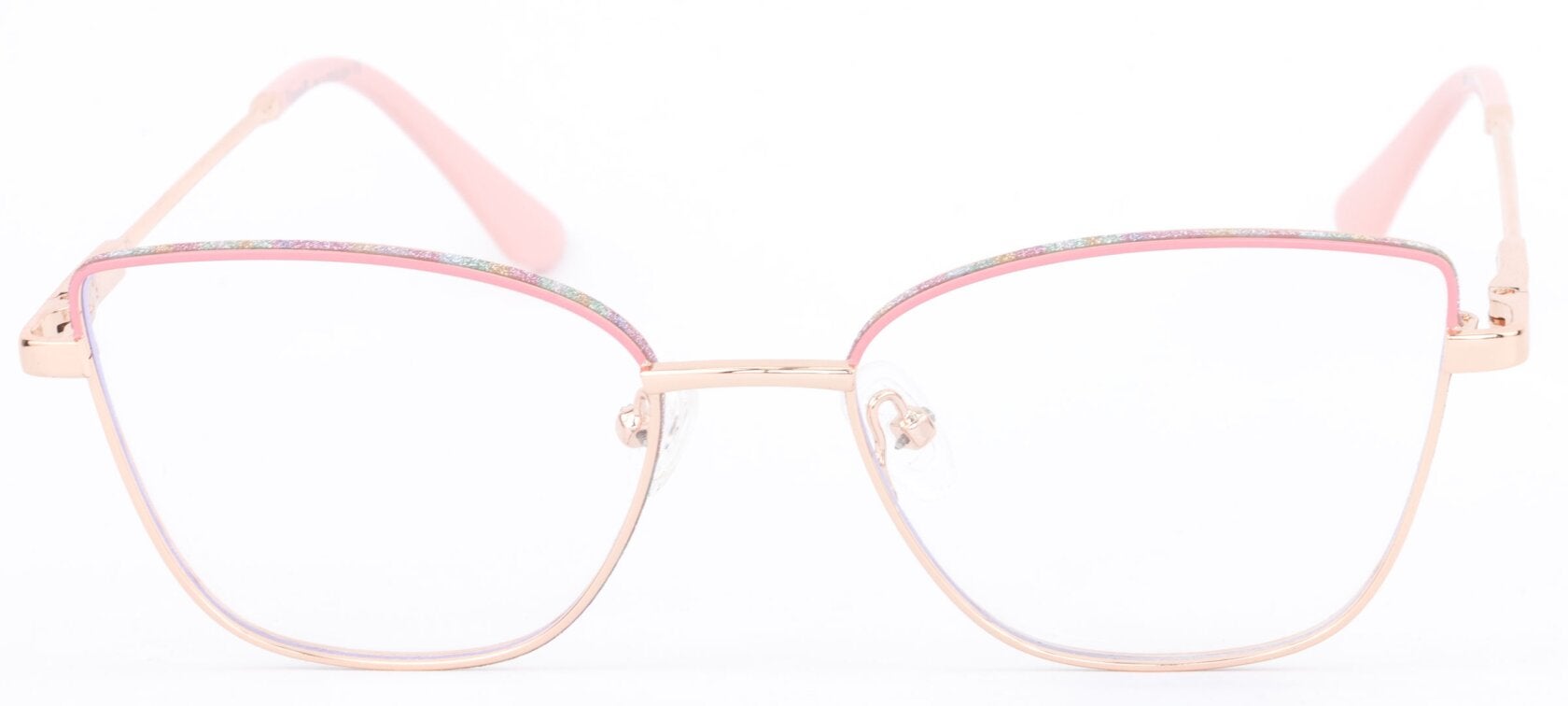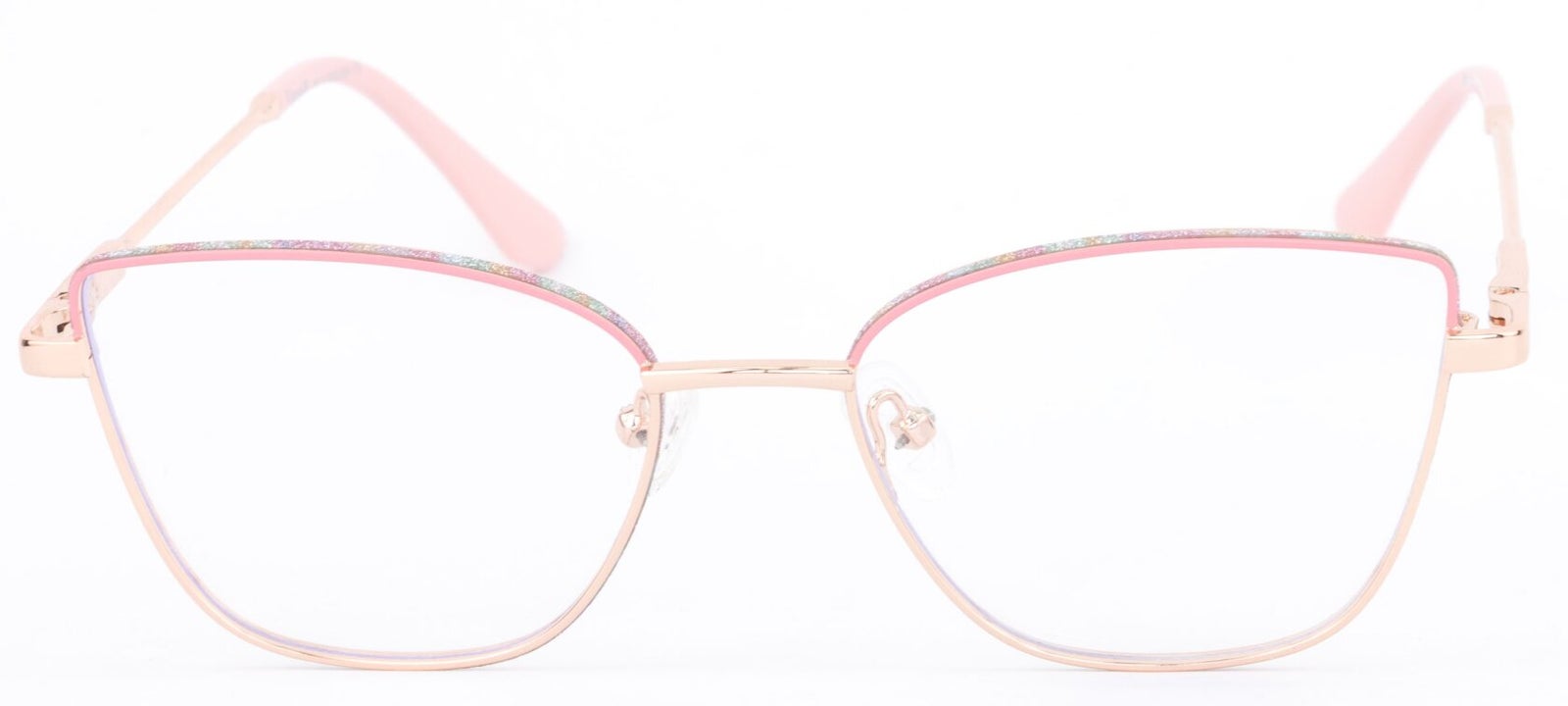 Montura de gafas con forma Semiagatada estilo de marco Completo, de color Rosado con soporte de nariz de plaquetas