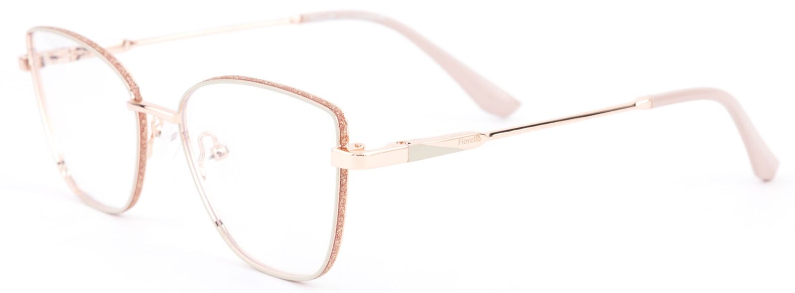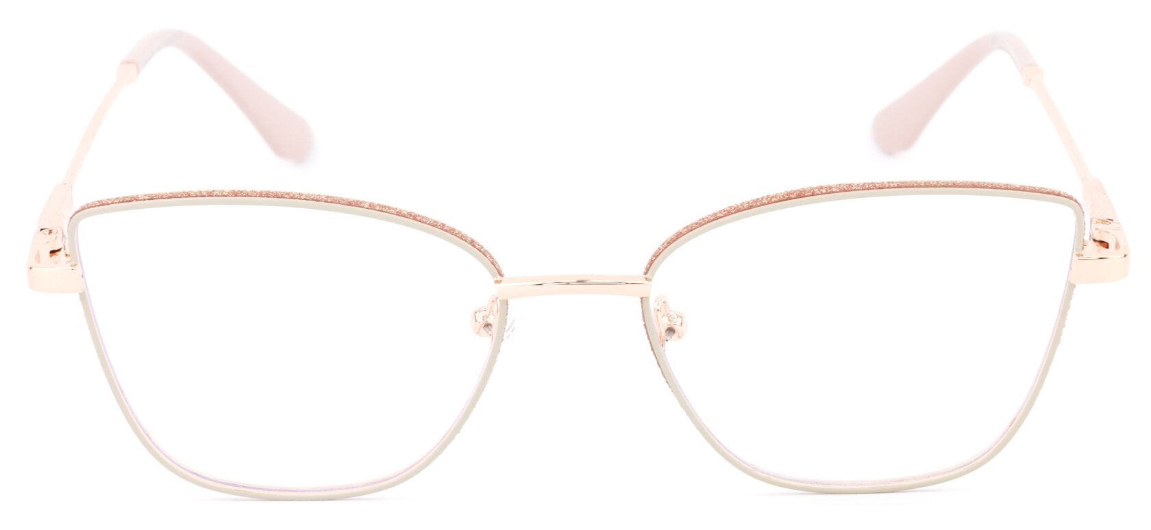 Montura de gafas con forma Semiagatada estilo de marco Completo, de color Crema con soporte de nariz de plaquetas