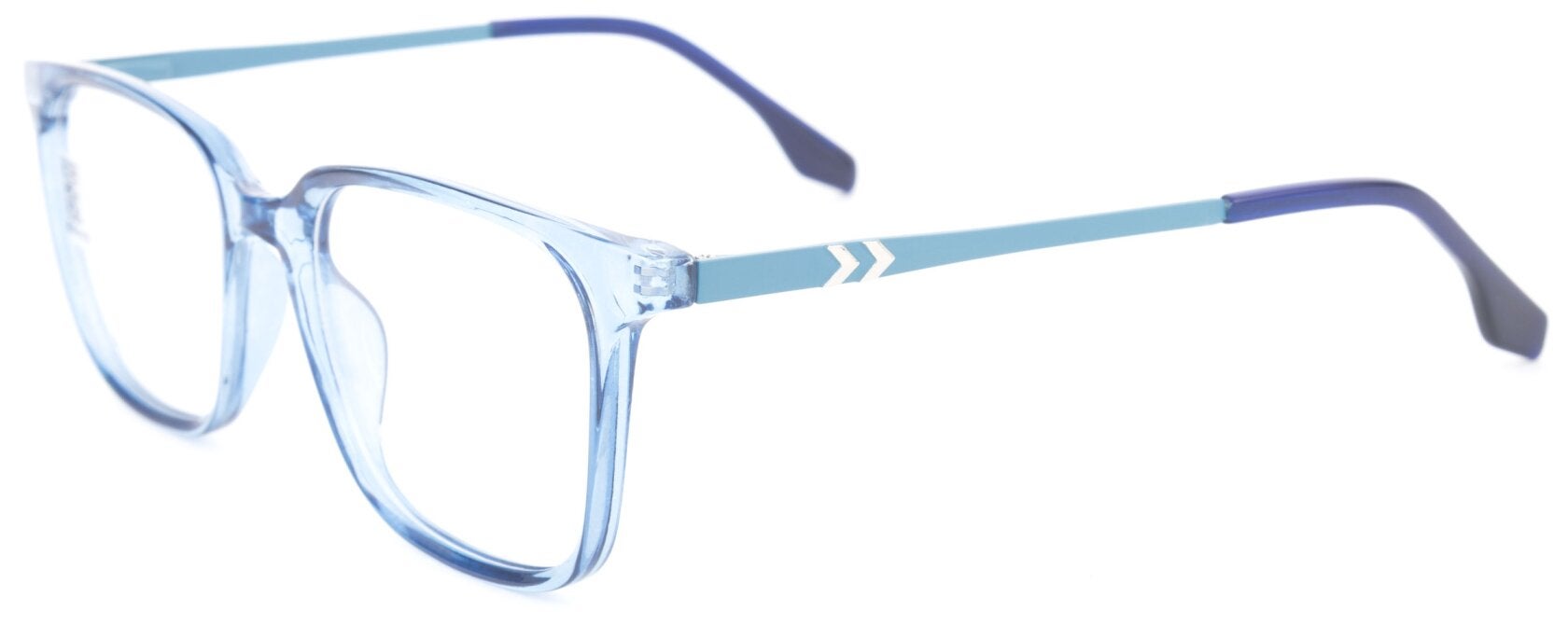 Montura de gafas con forma Cuadradas estilo de marco Completo, de colores Azul Claro, Plata