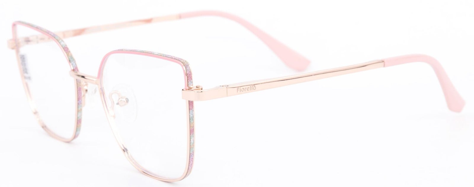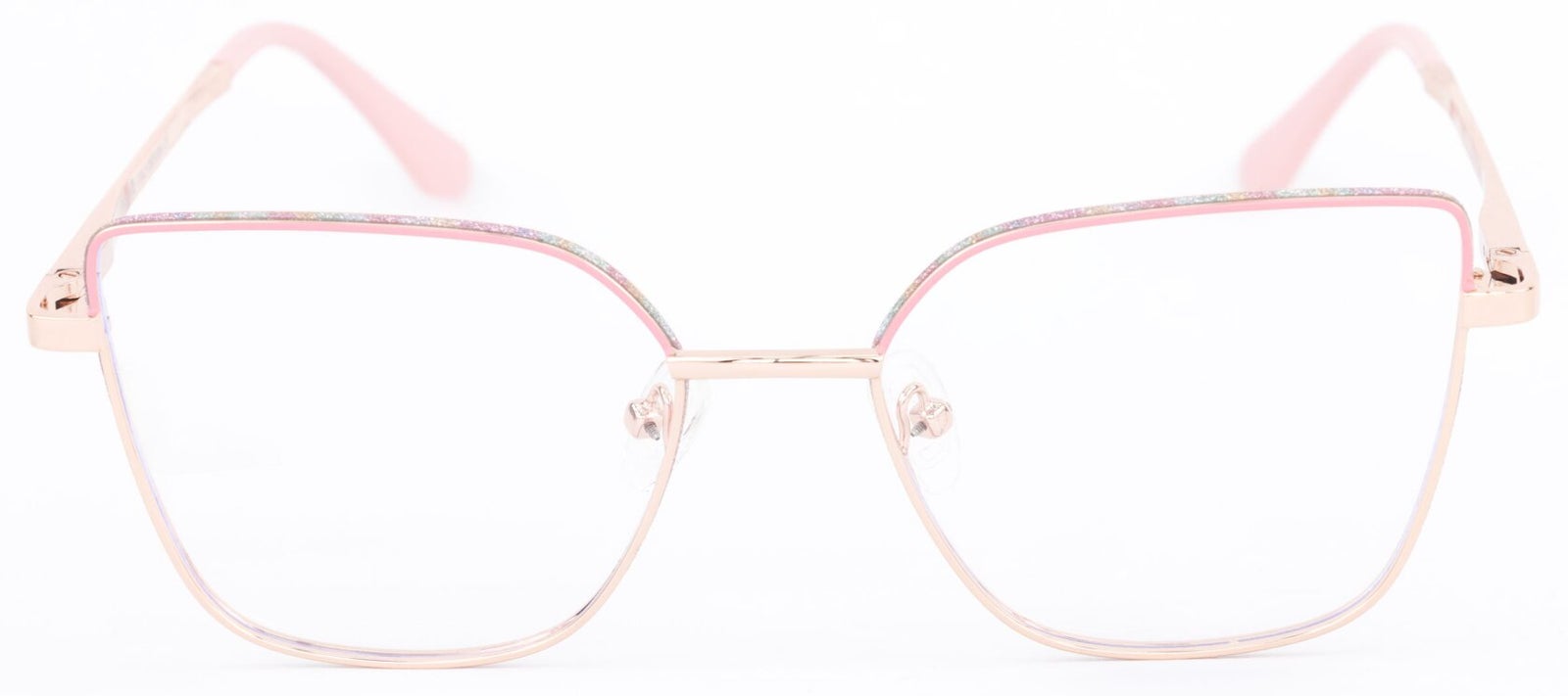 Montura de gafas con forma Semiagatada estilo de marco Completo, de colores Rosado, Dorado con soporte de nariz de plaquetas