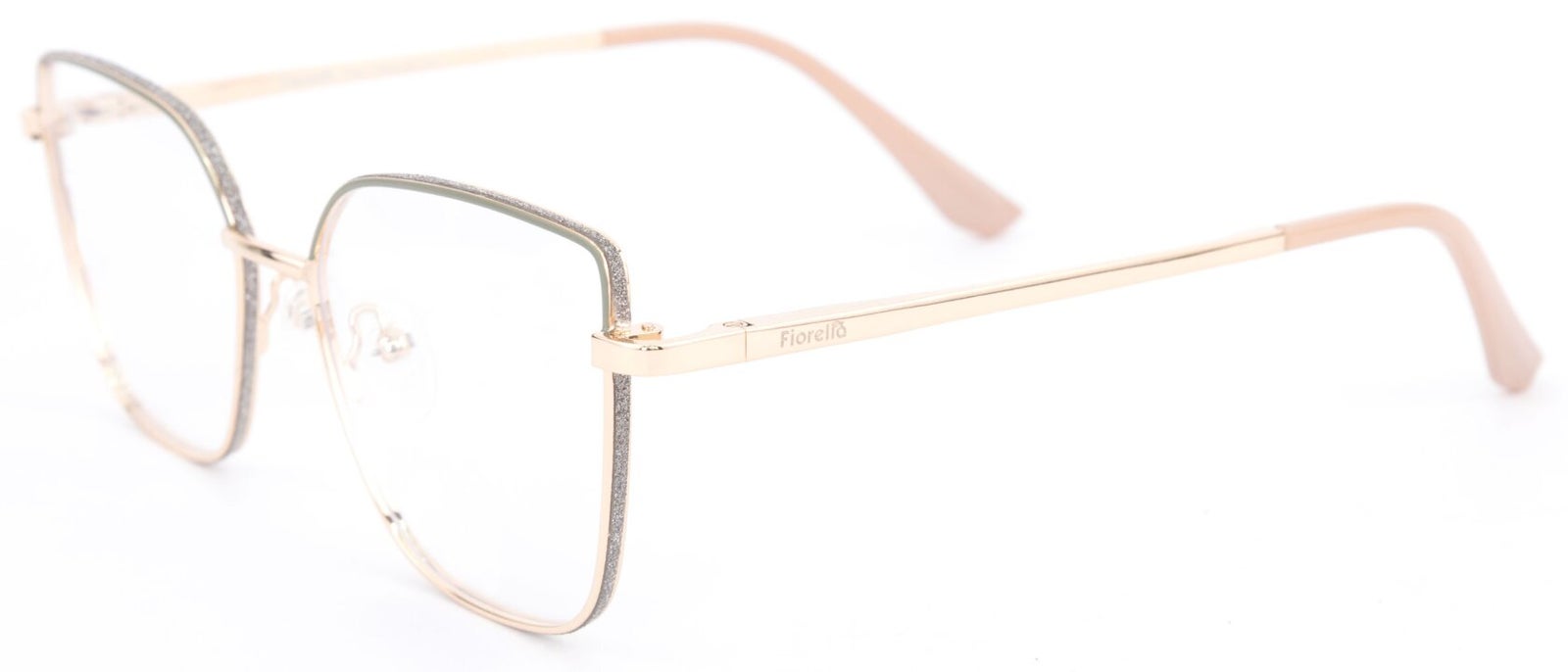 Montura de gafas con forma Semiagatada estilo de marco Completo, de colores Gris, Dorado con soporte de nariz de plaquetas