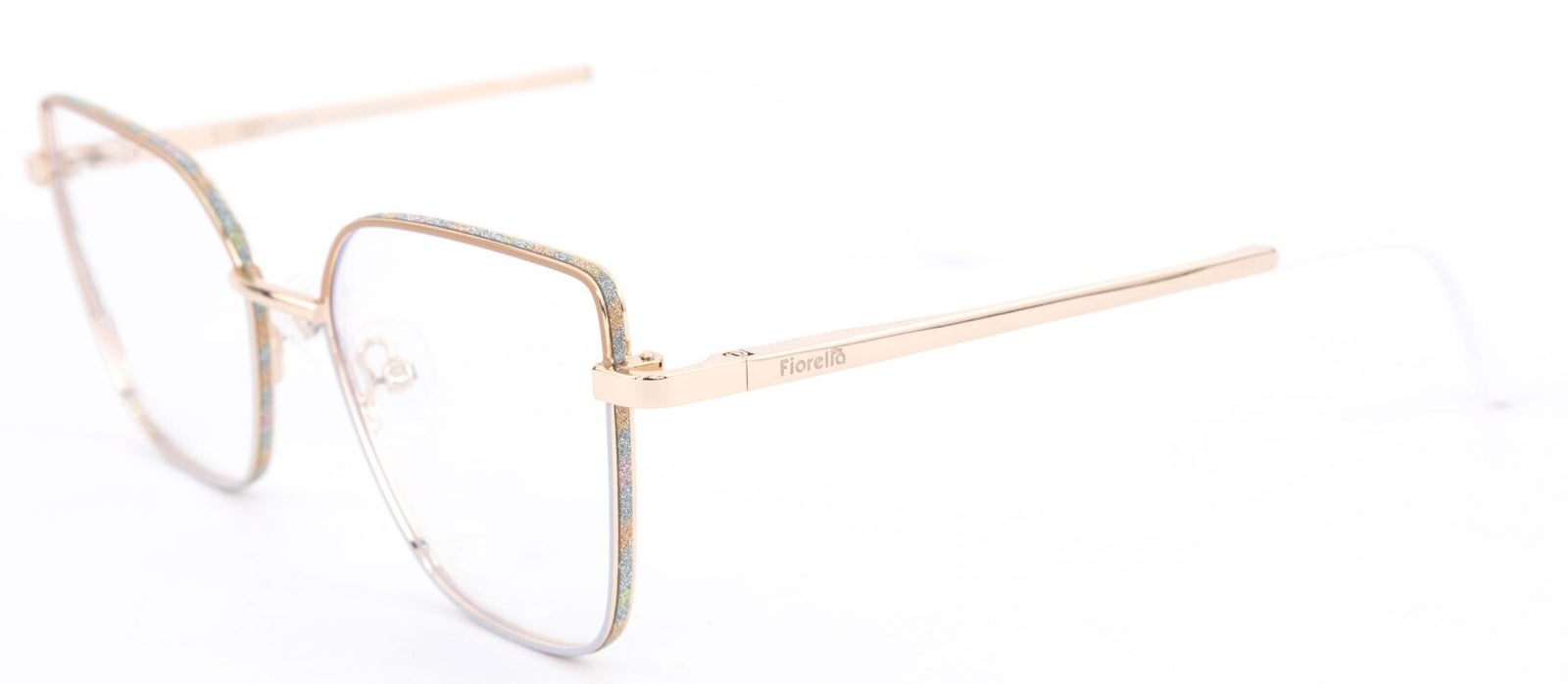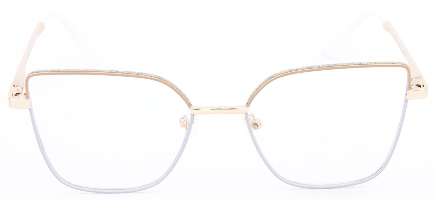 Montura de gafas con forma Semiagatada estilo de marco Completo, de colores Rosado, Gris, Dorado con soporte de nariz de plaquetas