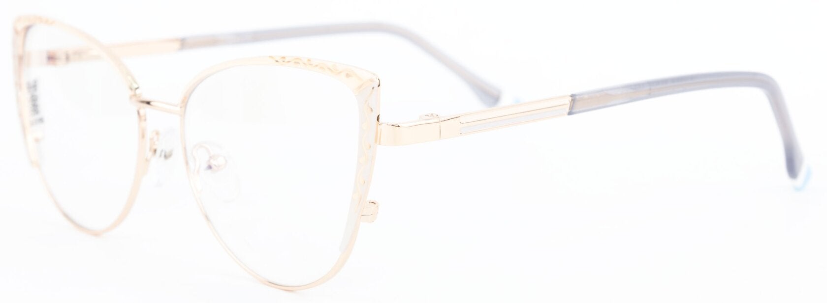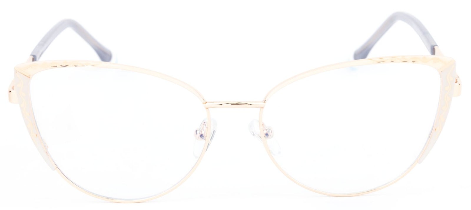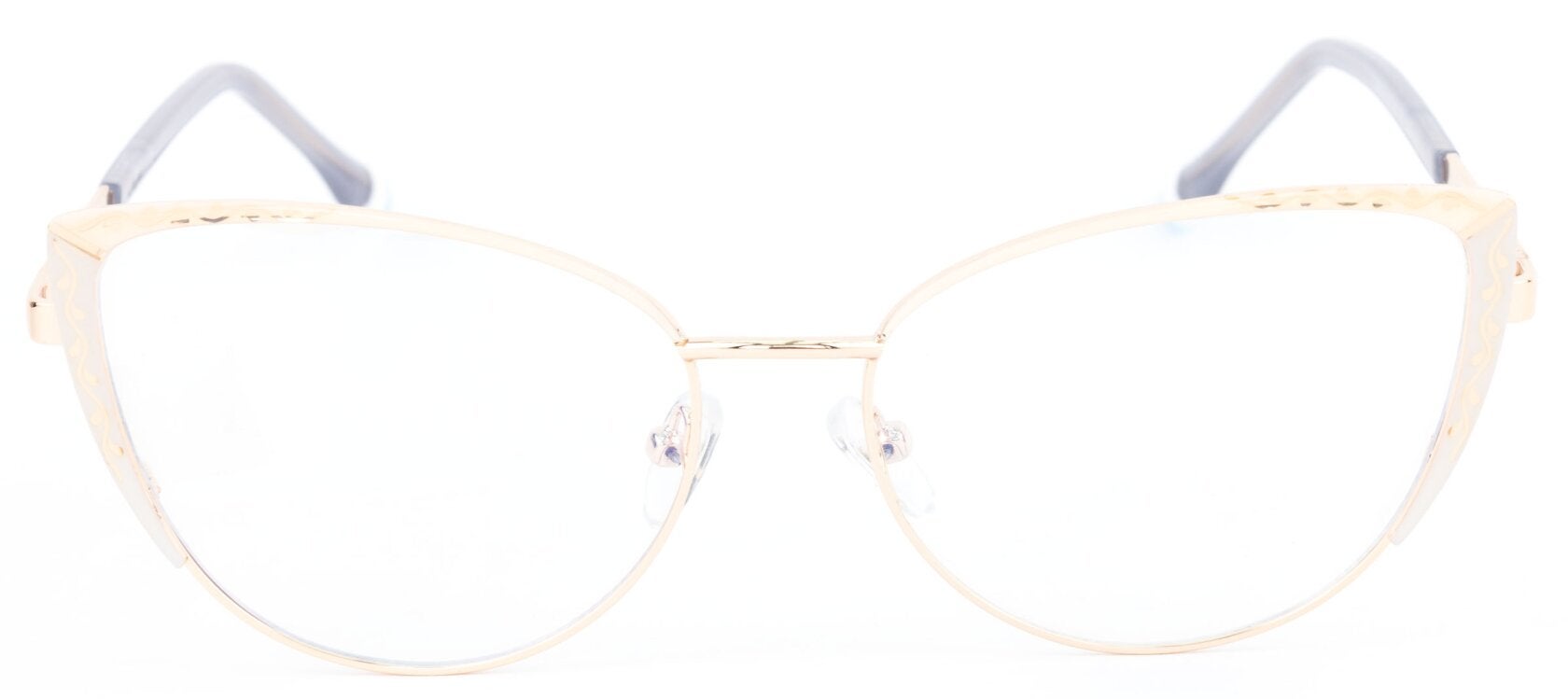 Montura de gafas con forma Agatada estilo de marco Completo, de colores Crema, Blanco, Dorado con soporte de nariz de plaquetas