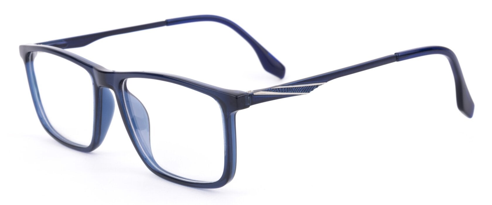 Montura de gafas con forma Rectangular estilo de marco Completo, de colores Azul Oscuro, Con transparencia