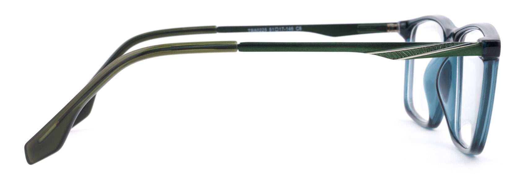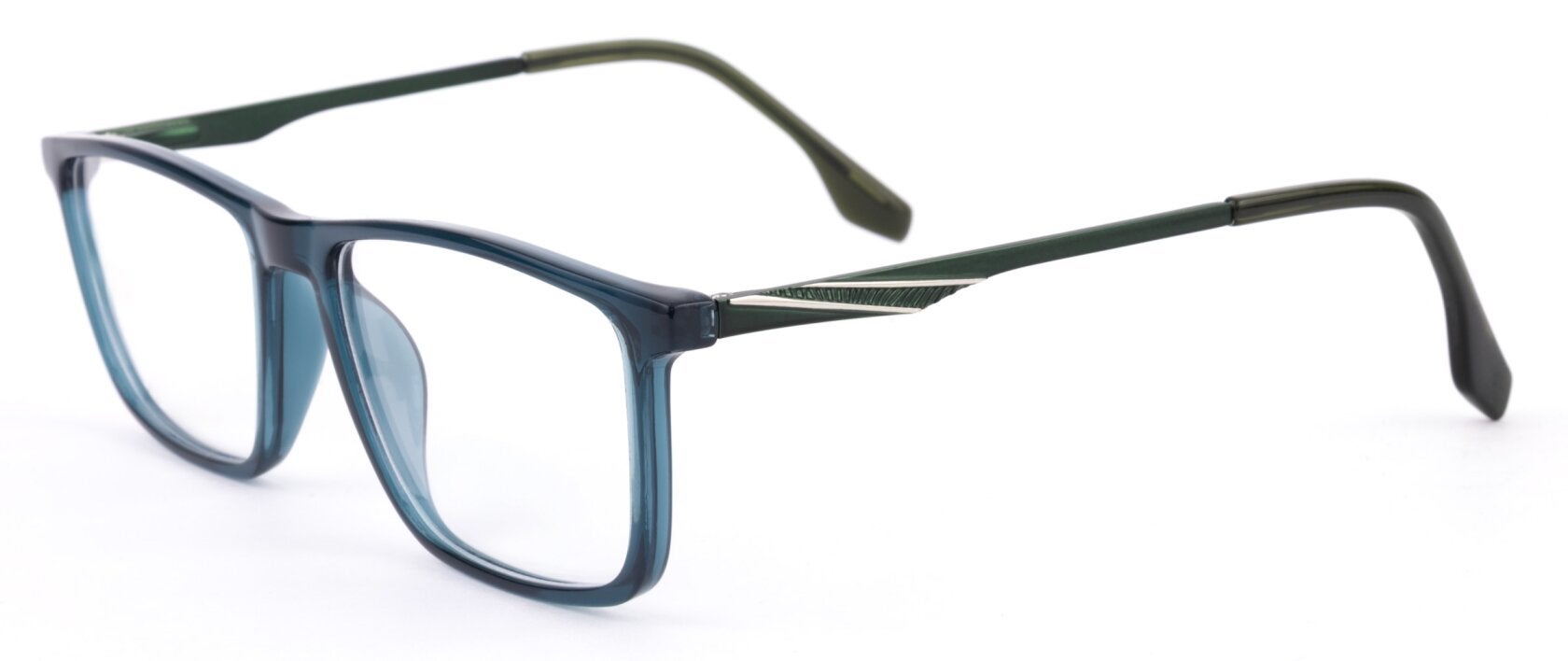 Montura de gafas con forma Rectangular estilo de marco Completo, de colores Verde Oscuro, Con transparencia