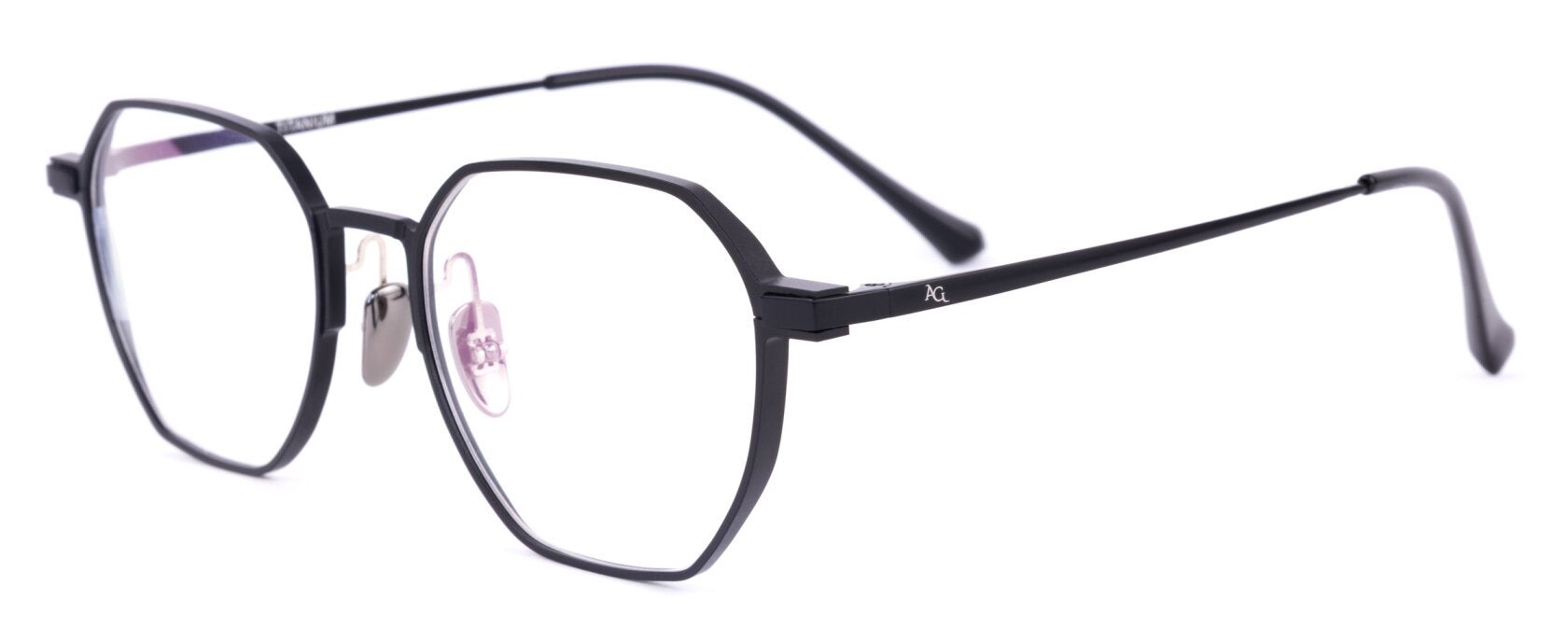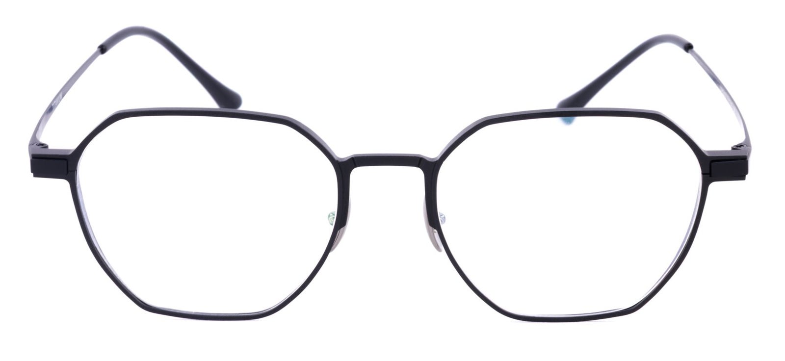 Montura de gafas con forma Hexagonales estilo de marco Completo, de color Negro con soporte de nariz de plaquetas