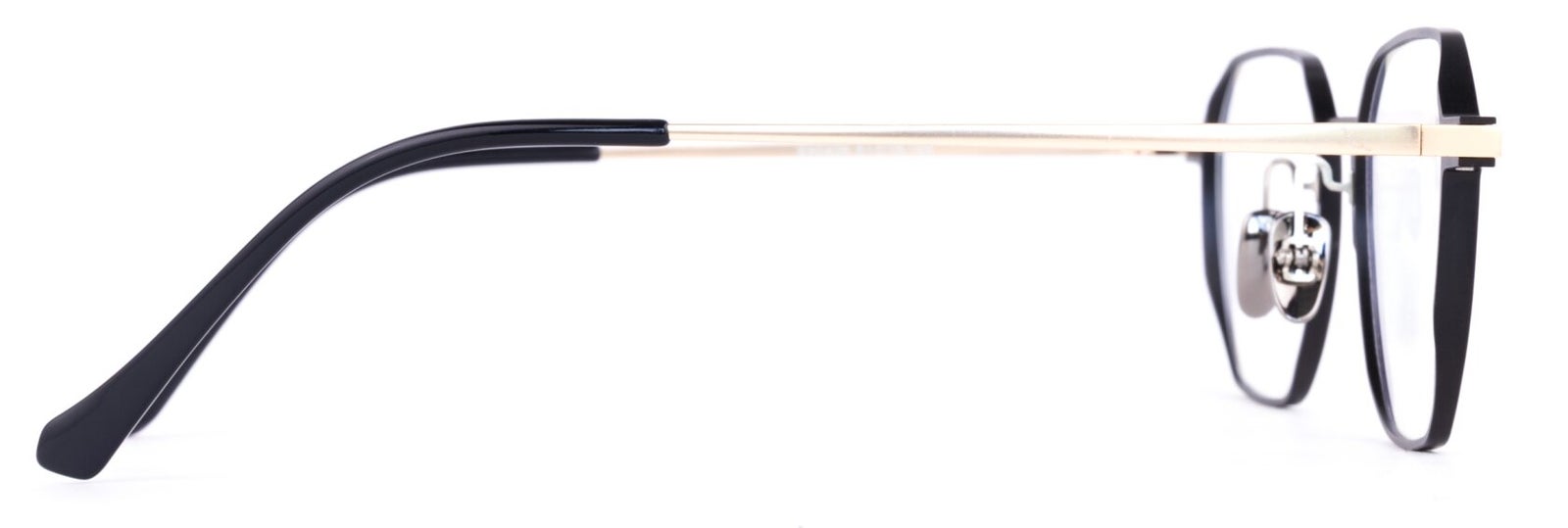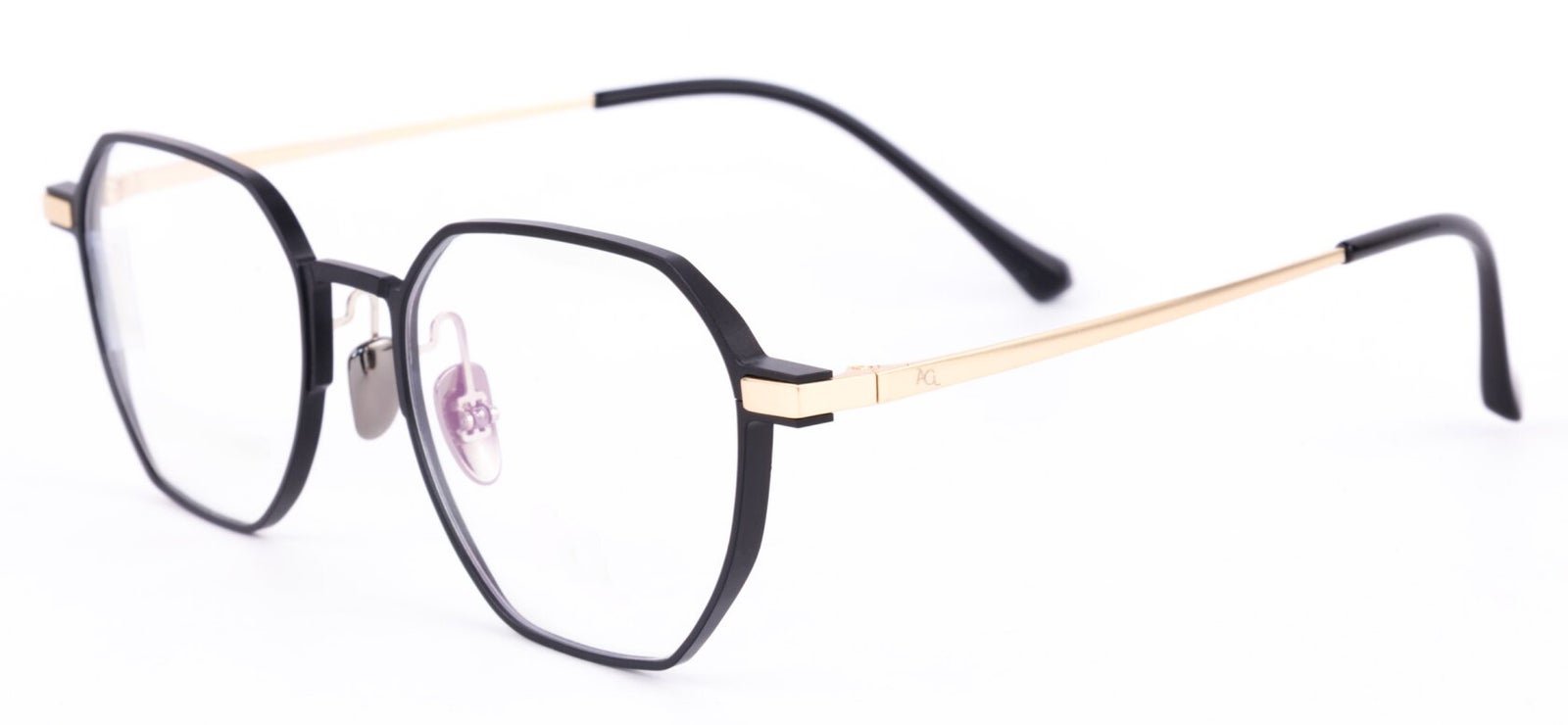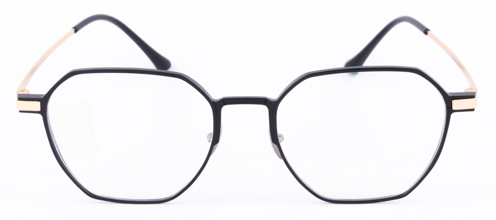 Montura de gafas con forma Hexagonales estilo de marco Completo, de colores Negro, Dorado con soporte de nariz de plaquetas