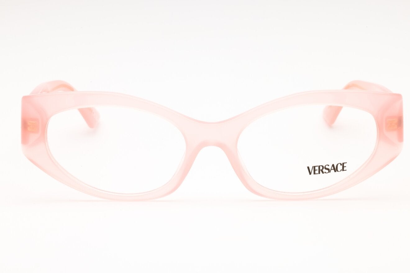 Montura de gafas marca VERSACE con forma Agatada estilo de marco Completo, de colores Rosado, Transparente