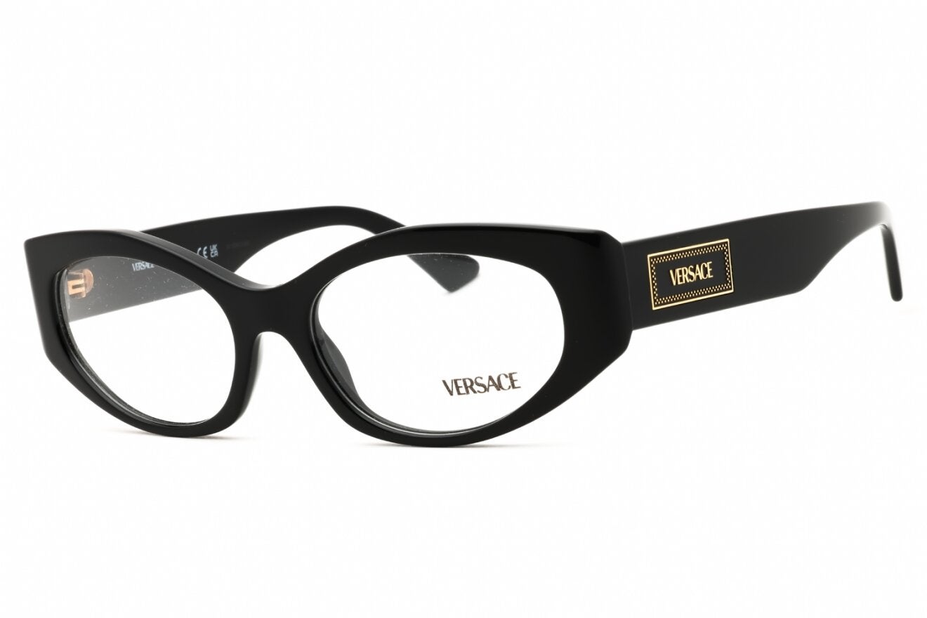 Montura de gafas marca VERSACE con forma Agatada estilo de marco Completo, de colores Negro, Dorado