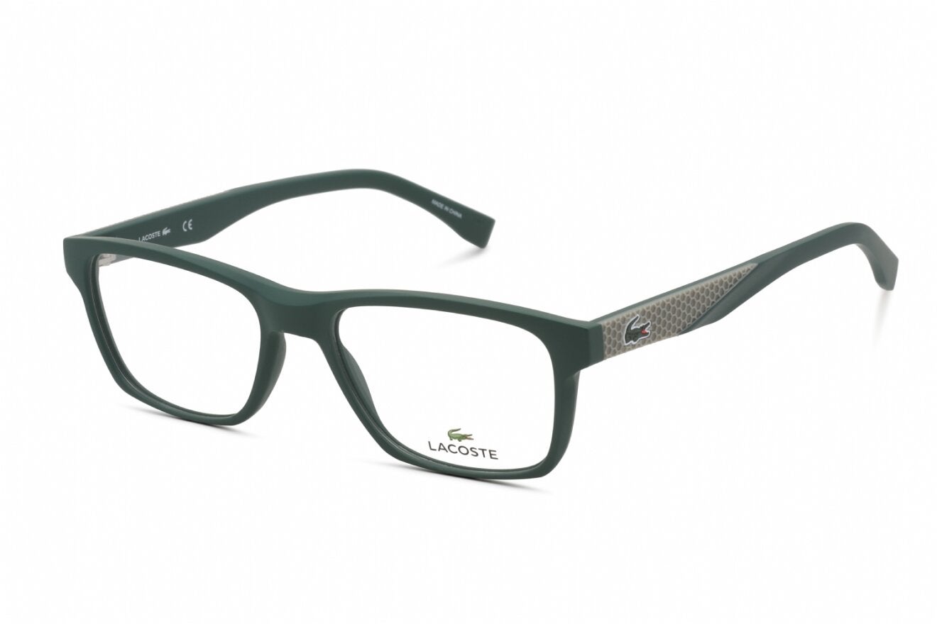 Montura de gafas marca LACOSTE con forma Rectangular estilo de marco Completo, de colores Gris, verde