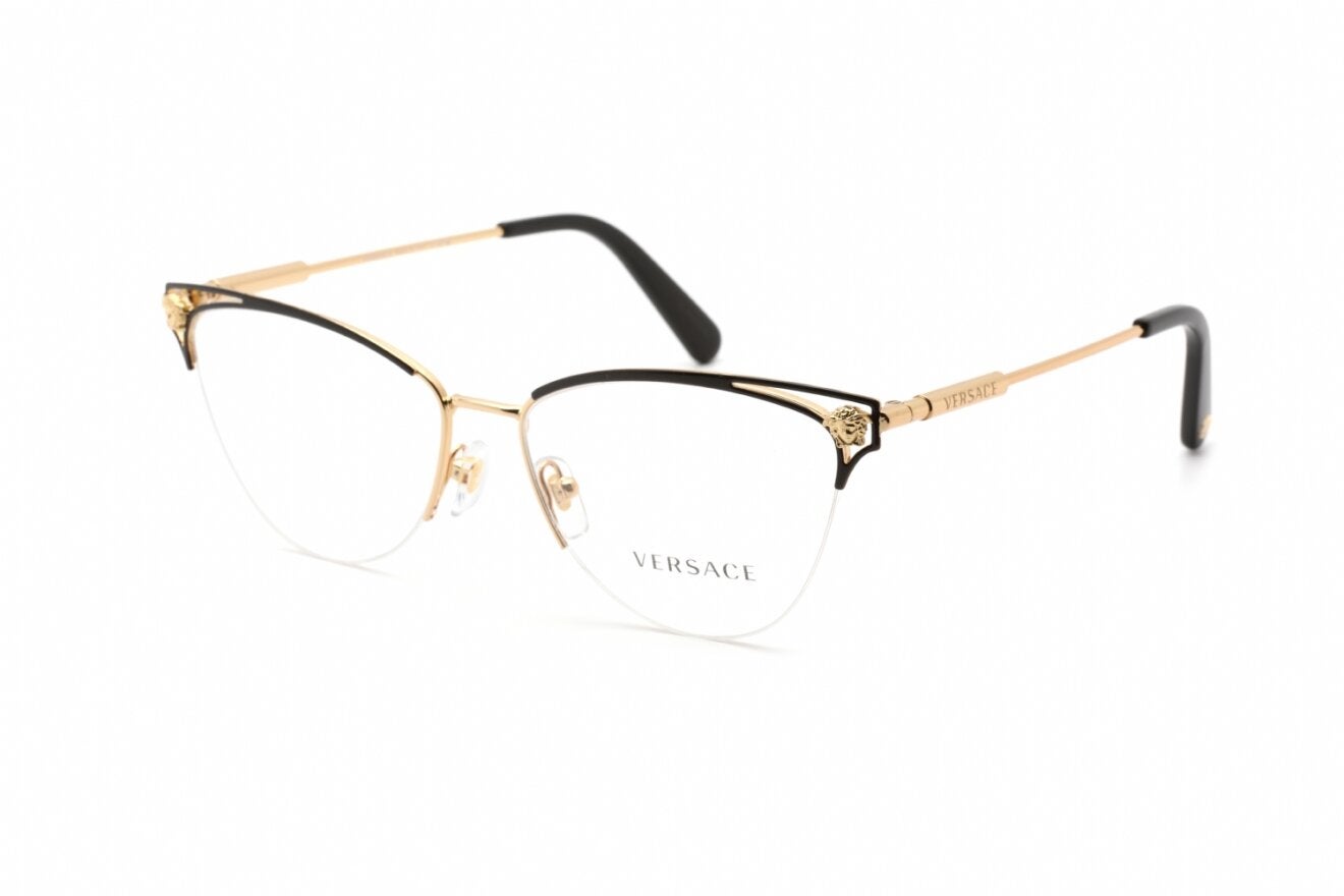 Montura de gafas marca VERSACE con forma Agatada estilo de marco Media Montura, de colores Negro, Dorado