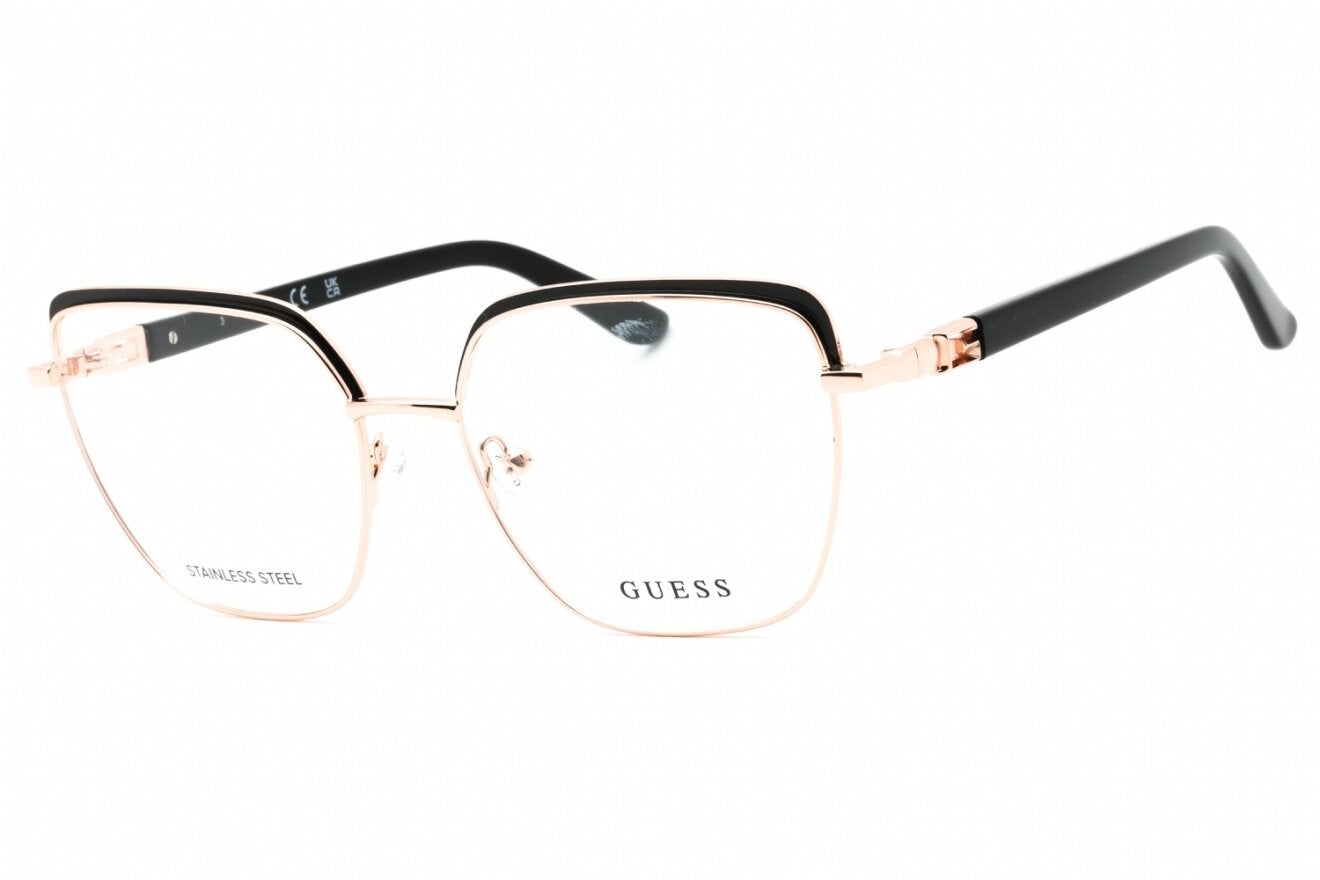 Montura de gafas marca GUESS con forma Agatada estilo de marco Al aire, de colores Negro, Oro rosa