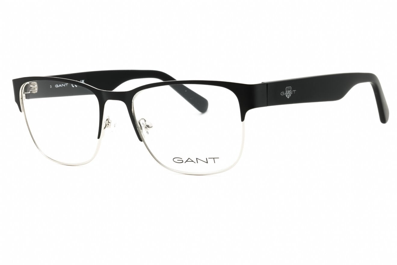 Montura de gafas marca GANT con forma Clubmaster estilo de marco Media Montura, de color Negro