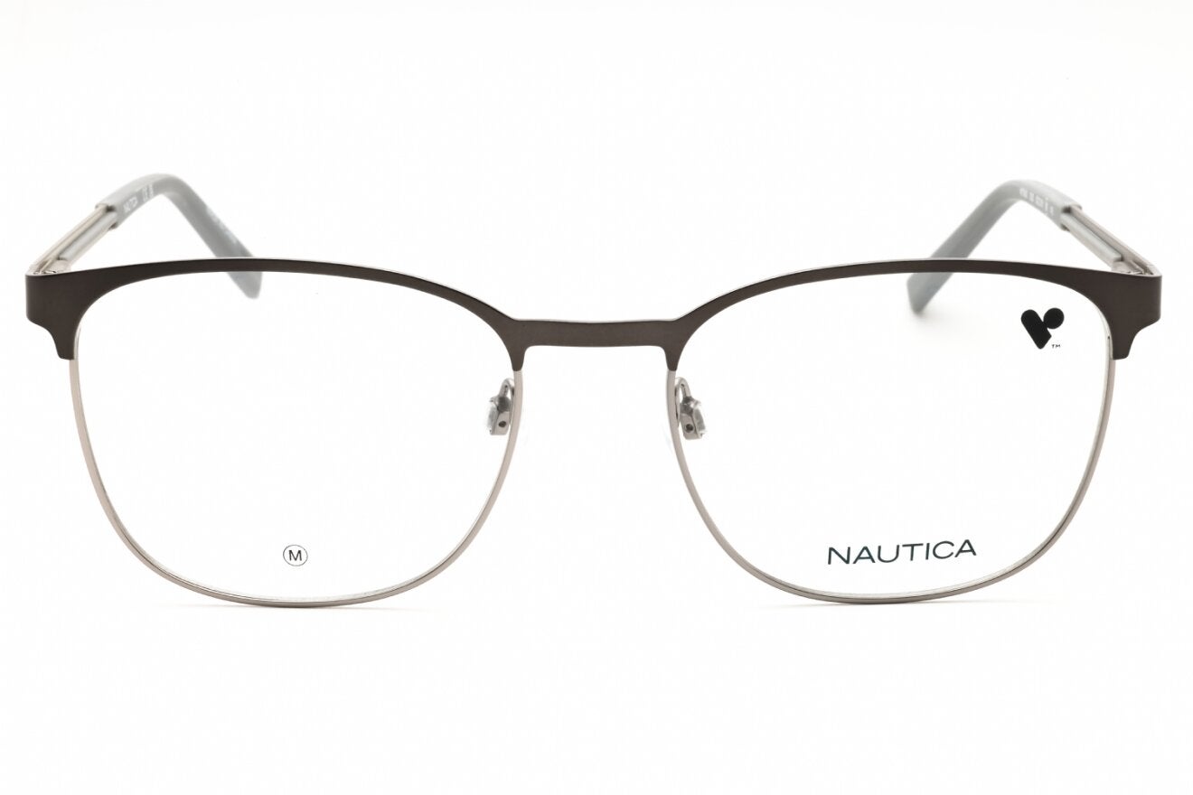Montura de gafas marca NAUTICA con forma Clubmaster estilo de marco Media Montura, de colores Negro, Gris