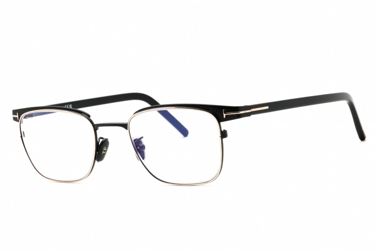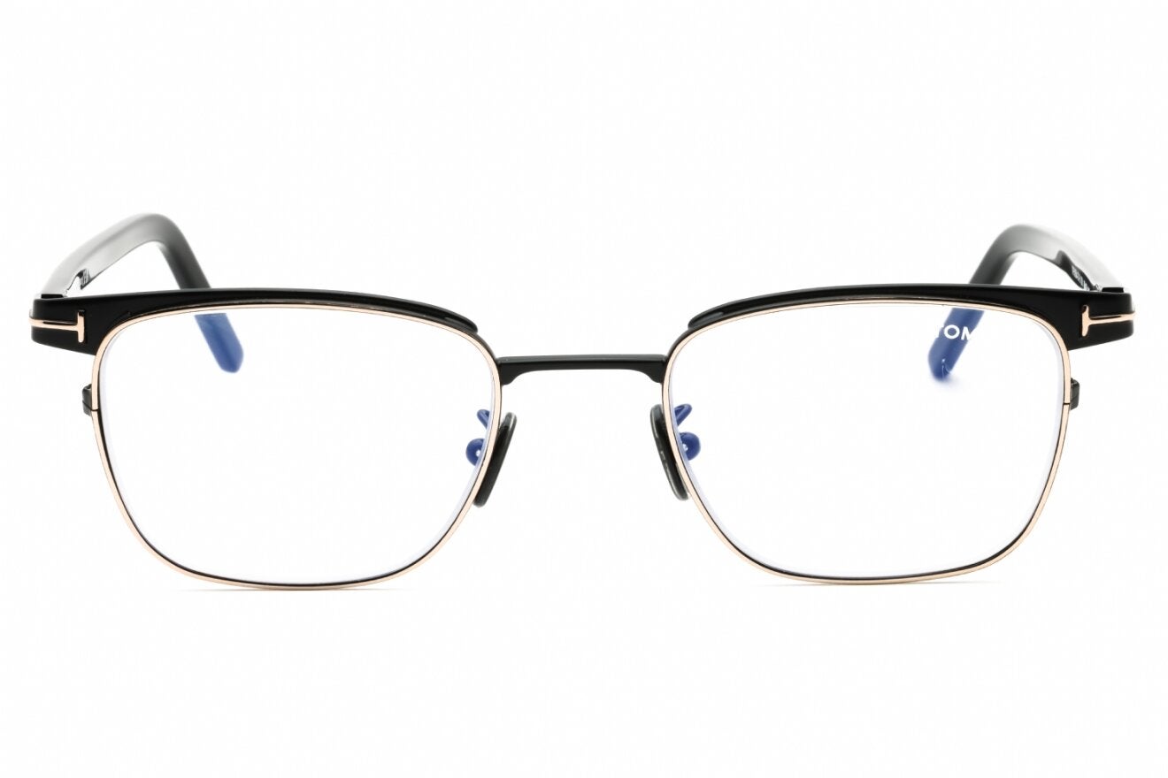 Montura de gafas marca TOM FORD con forma Clubmaster estilo de marco Media Montura, de colores Negro, Plata