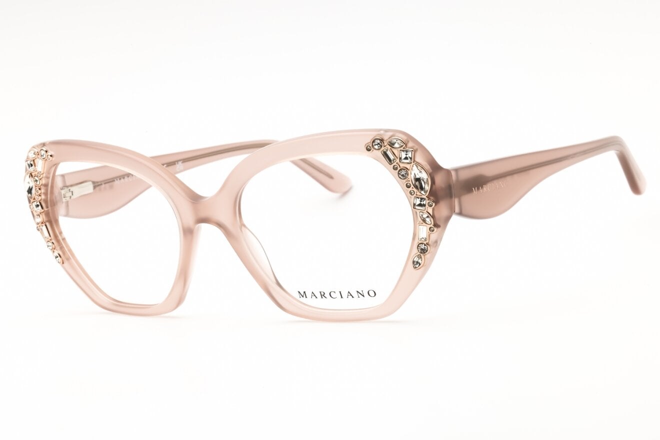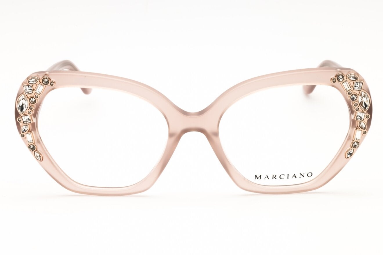 Montura de gafas marca GUESS BY MARCIANO con forma Agatada estilo de marco Completo, de colores Rosado, Oro rosa