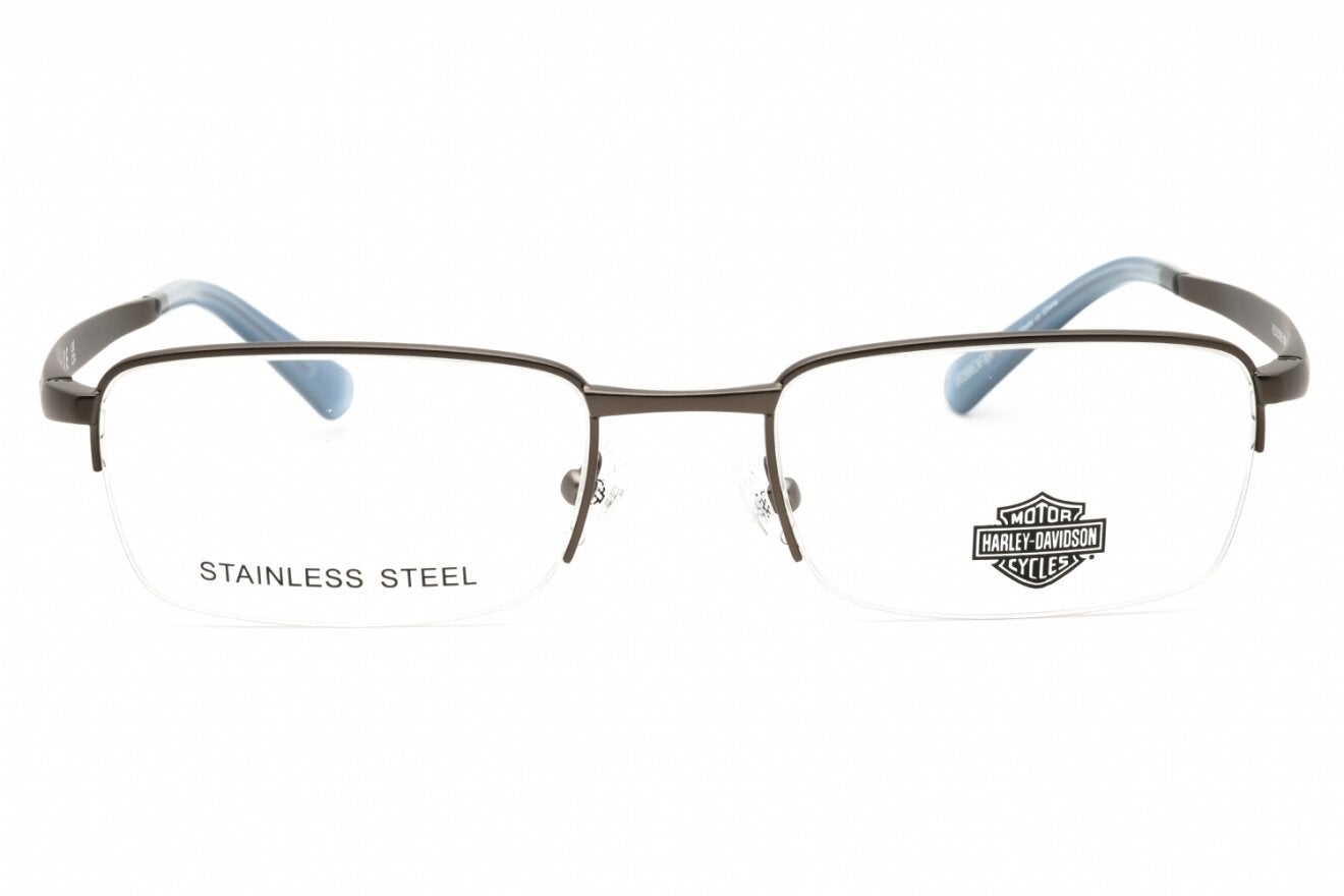 Montura de gafas marca HARLEY DAVIDSON con forma Rectangular estilo de marco Media Montura, de colores Gris, Plata