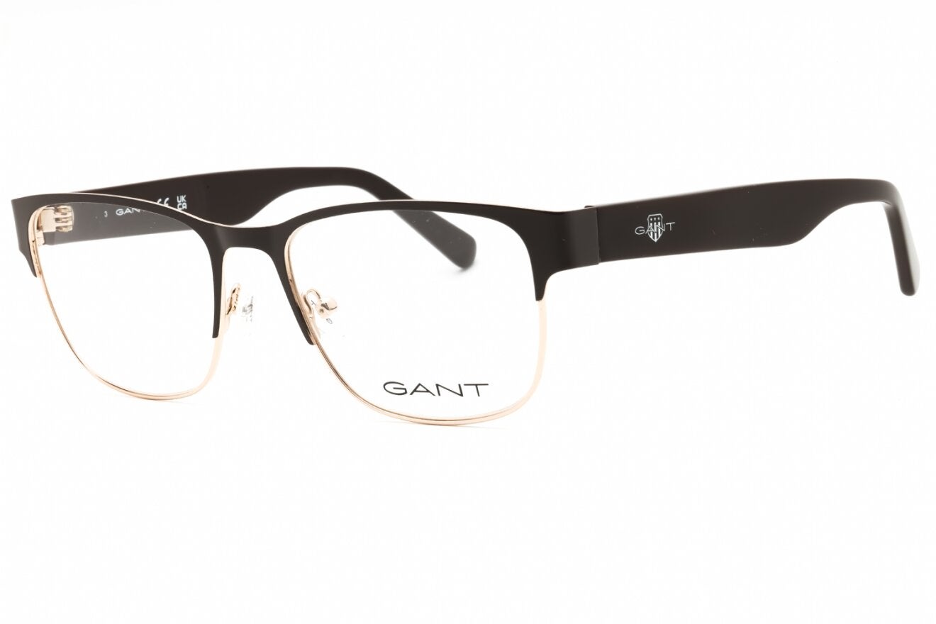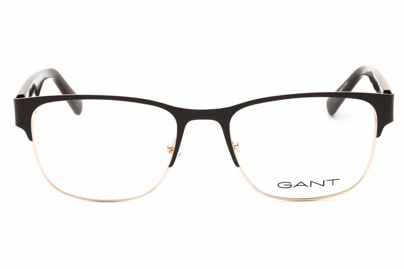 Montura de gafas marca GANT con forma Clubmaster estilo de marco Media Montura, de colores Negro, Plata