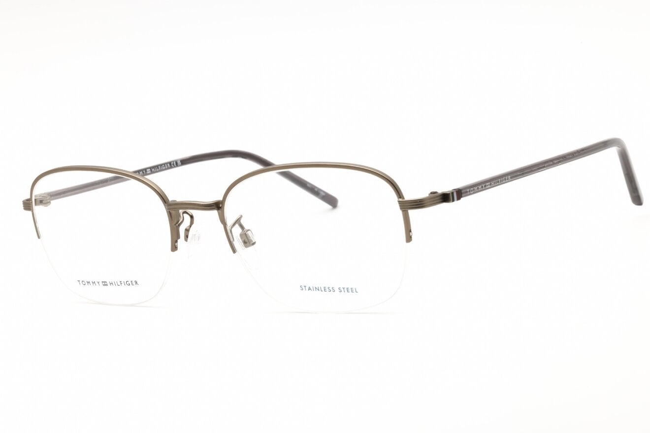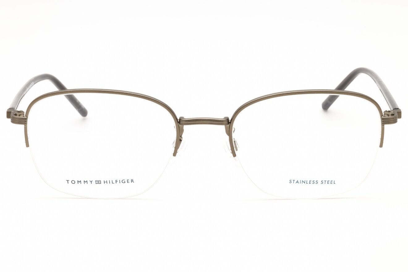 Montura de gafas marca TOMMY HILFIGER con forma Rectangular estilo de marco Media Montura, de colores Gris, Plata