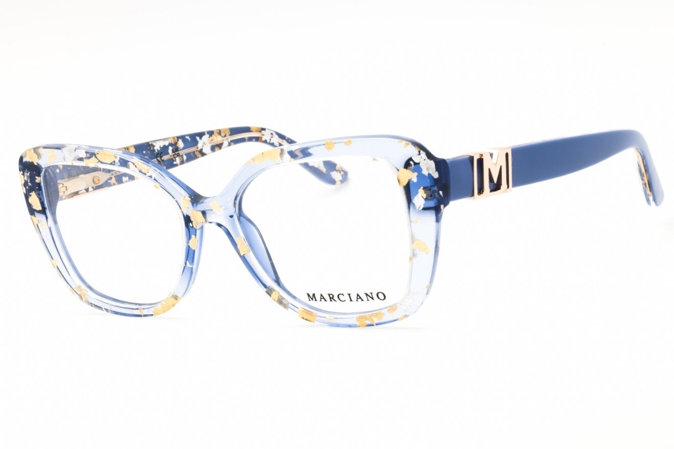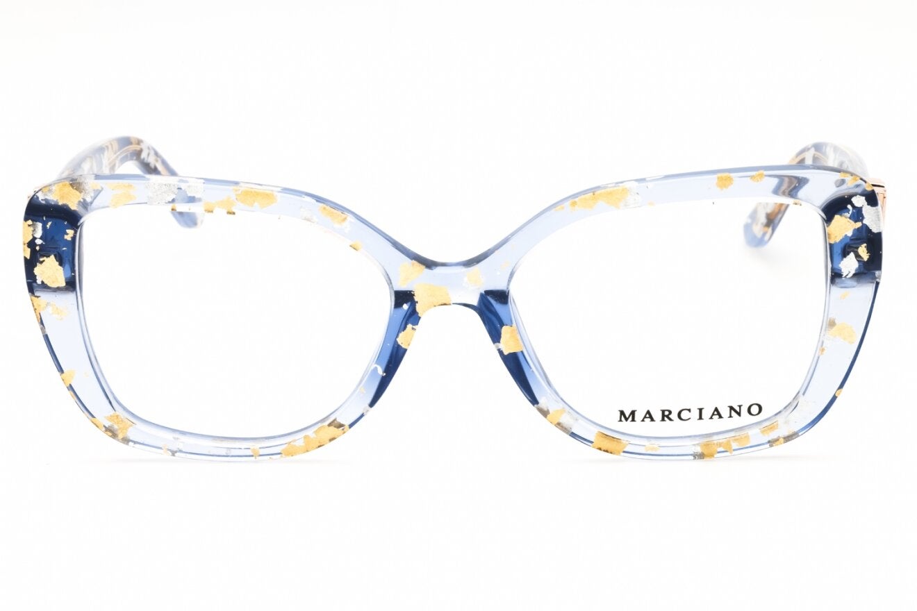 Montura de gafas marca GUESS BY MARCIANO con forma Agatada estilo de marco Completo, de colores Transparente, Azul