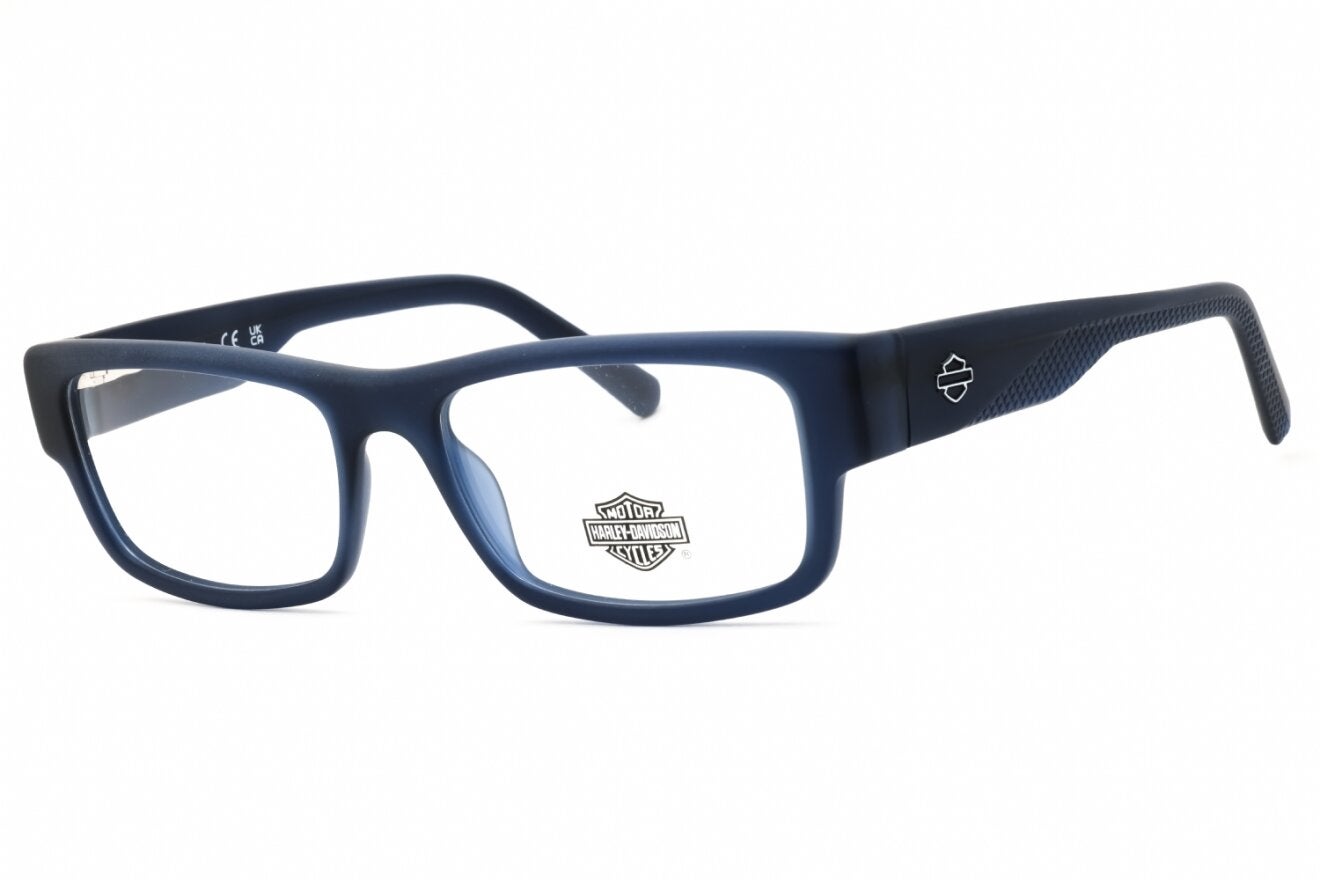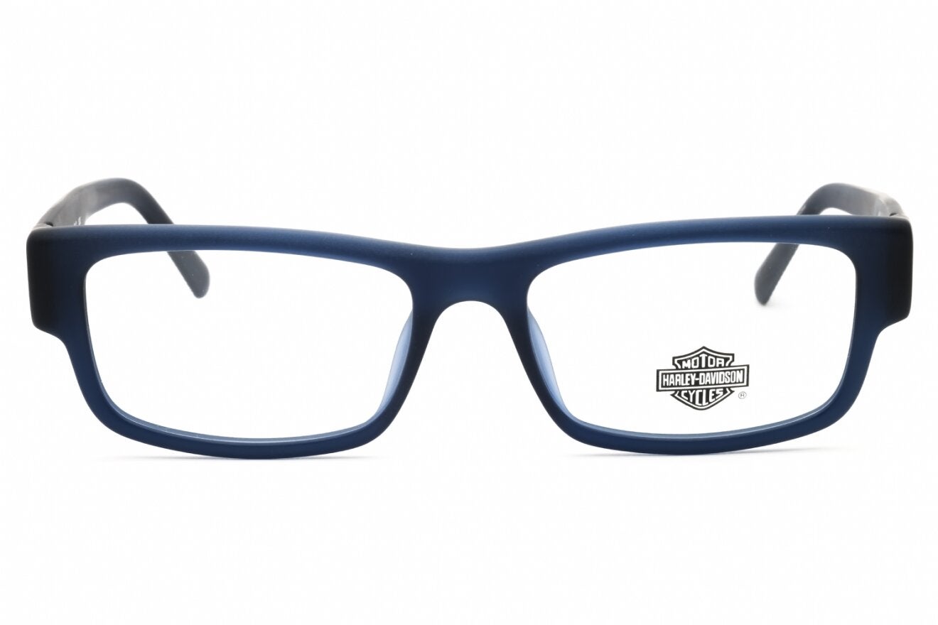 Montura de gafas marca HARLEY DAVIDSON con forma Rectangular estilo de marco Completo, de color Azul Oscuro