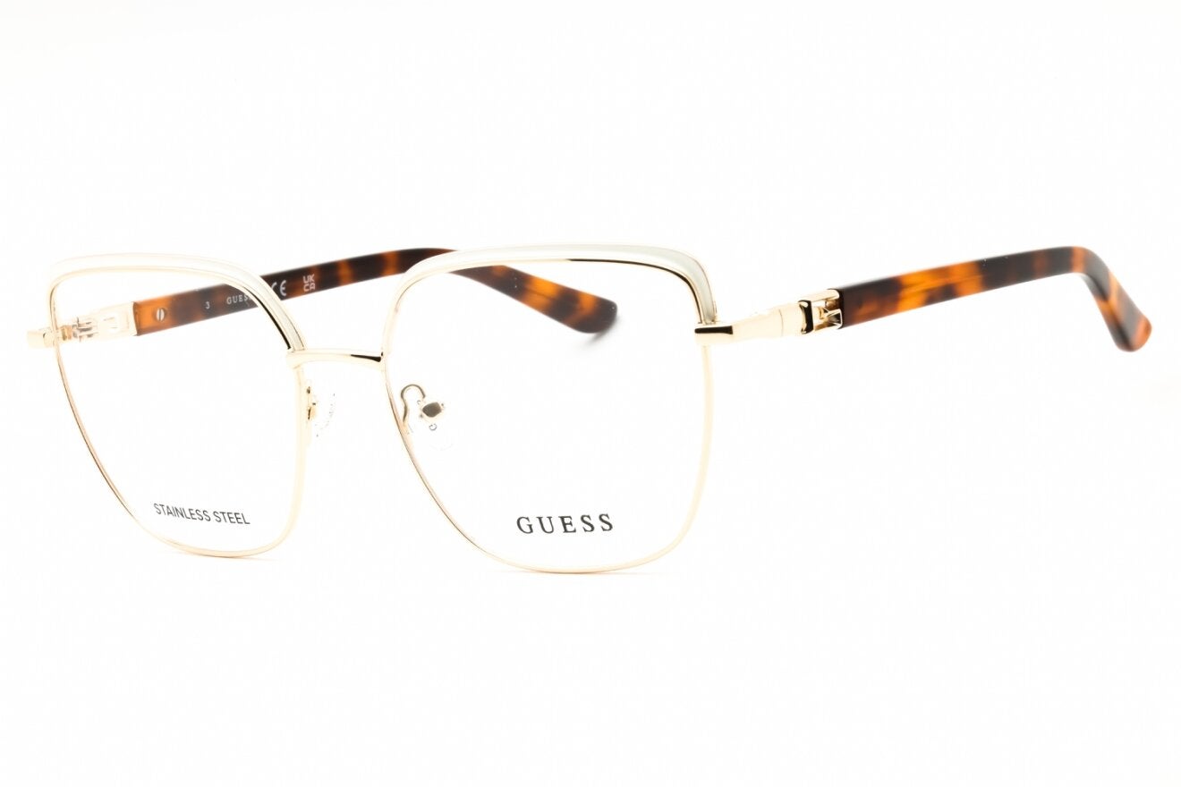 Montura de gafas marca GUESS con forma Agatada estilo de marco Al aire, de colores Animal Print, Dorado