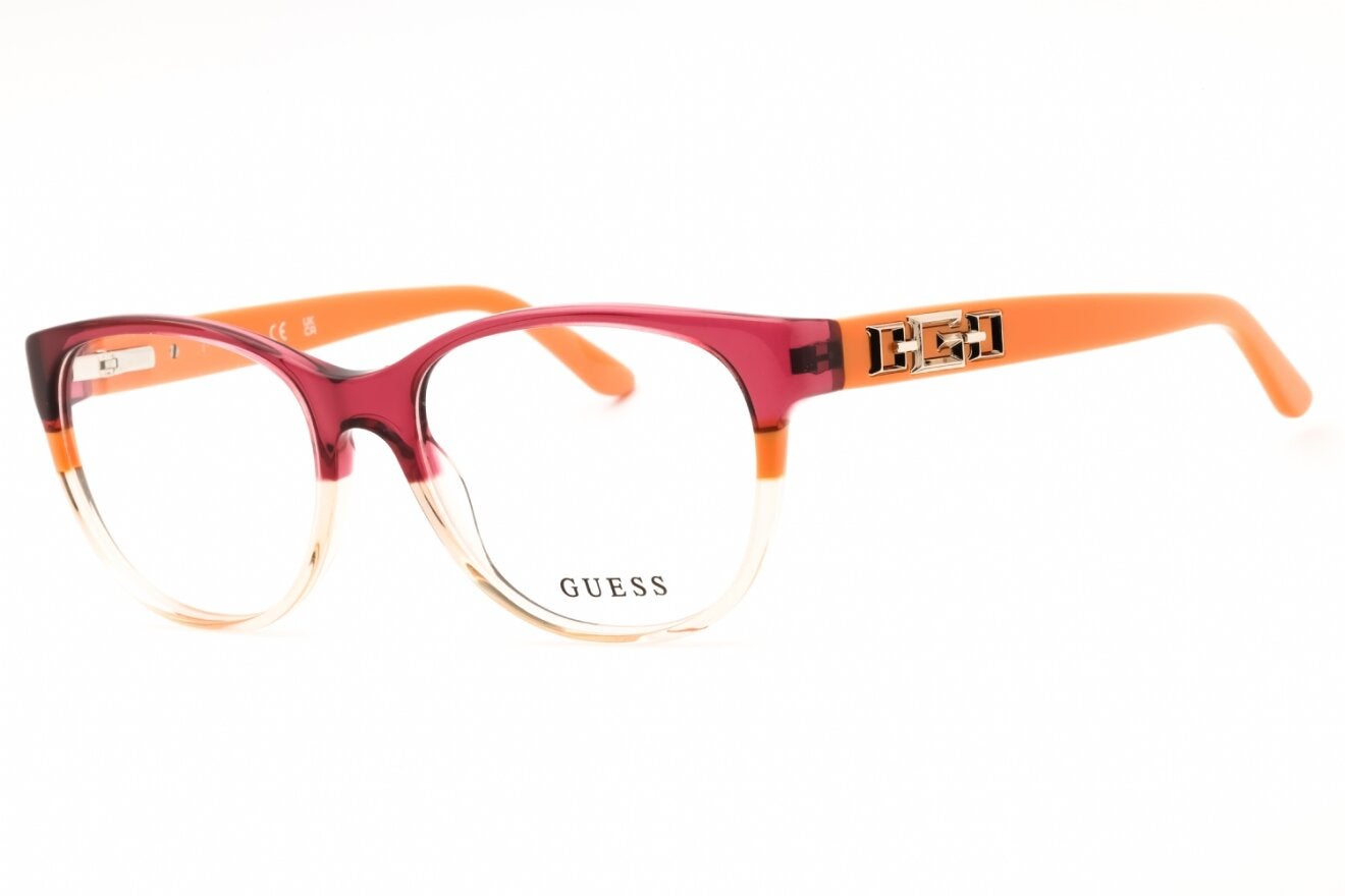 Montura de gafas marca GUESS con forma Clubmaster estilo de marco Completo, de colores Rosado, Naranja