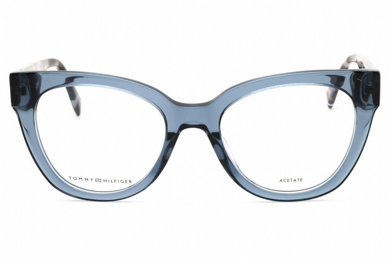 Montura de gafas marca TOMMY HILFIGER con forma Agatada estilo de marco Completo, de colores Azul Claro, Animal Print