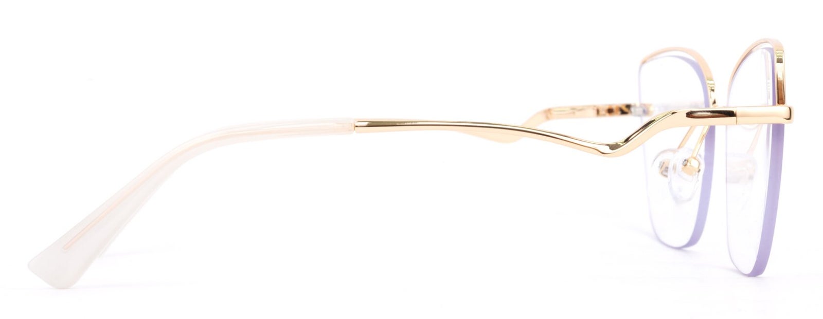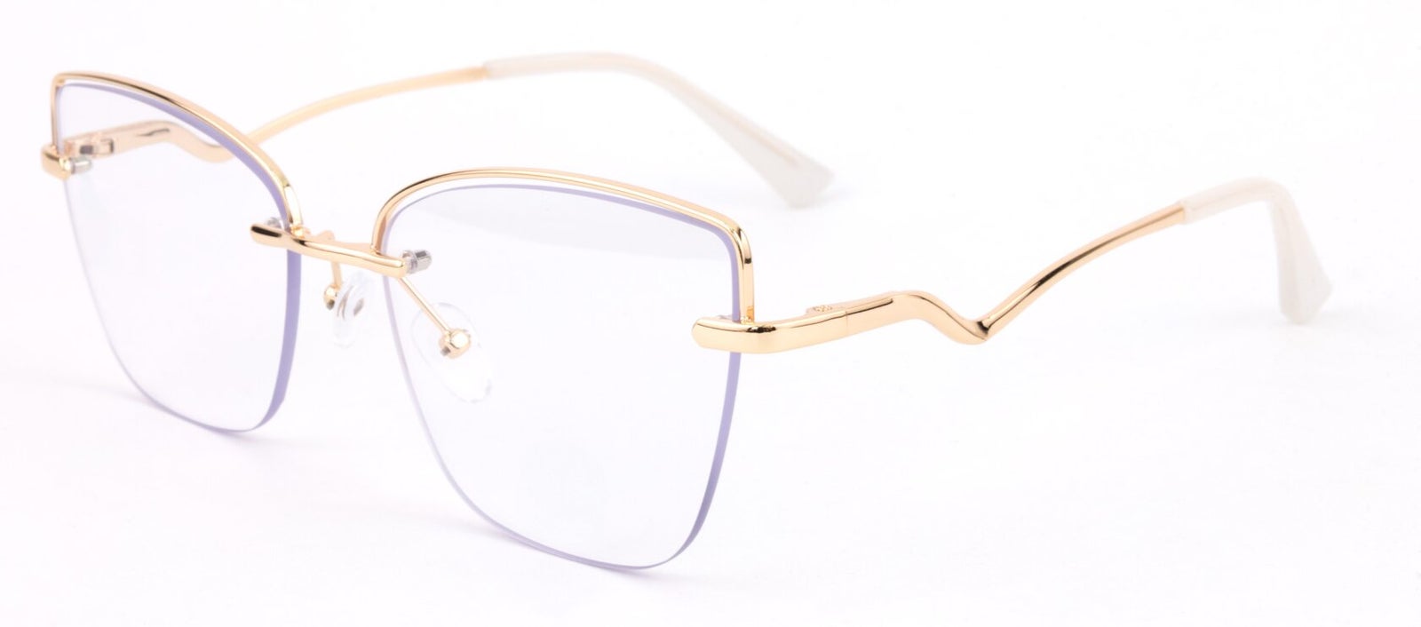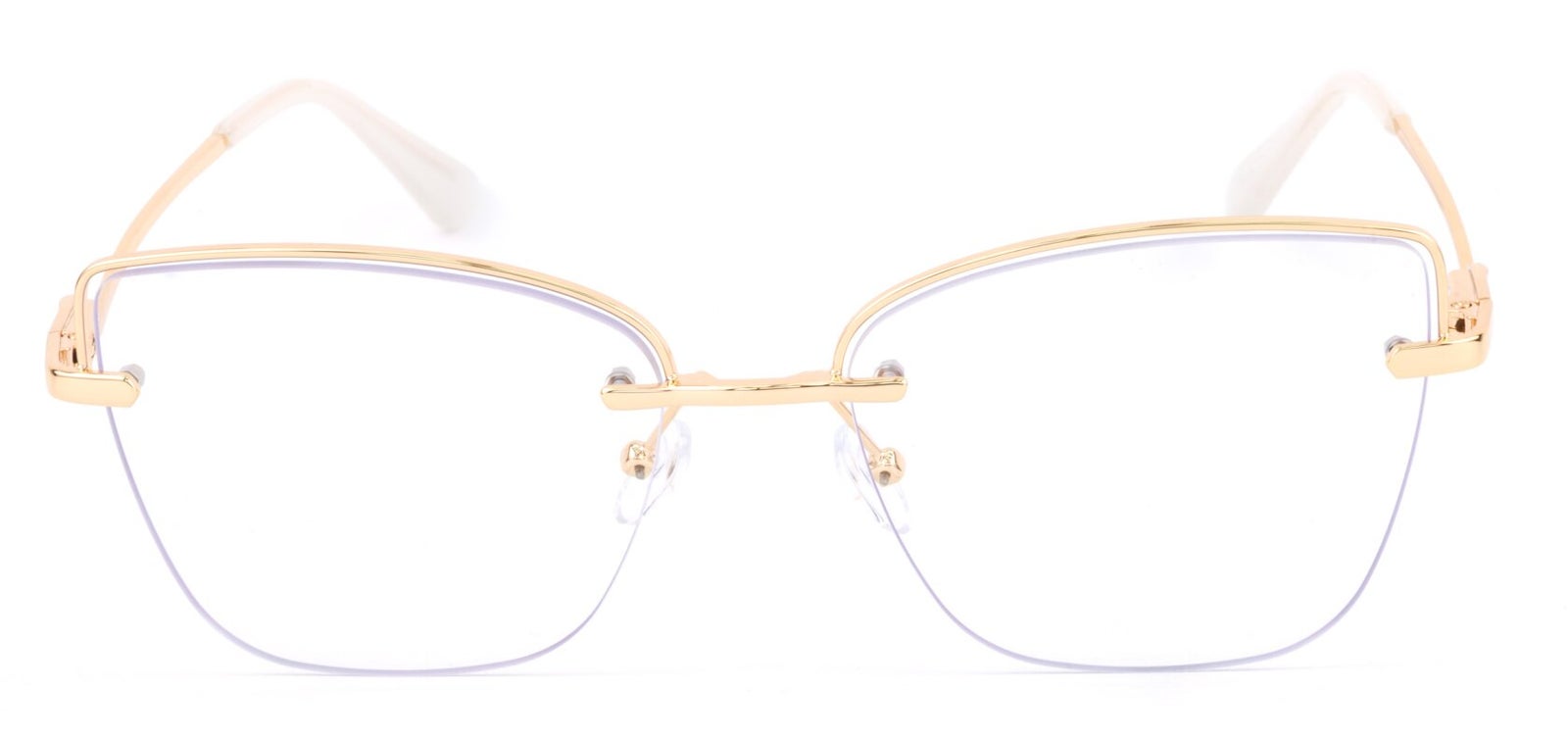 Montura de gafas con forma Semiagatada estilo de marco Al aire, de colores Dorado, Con transparencia con soporte de nariz de plaquetas