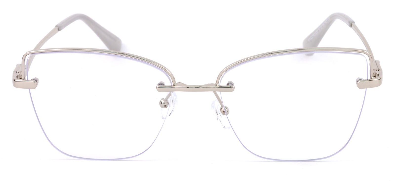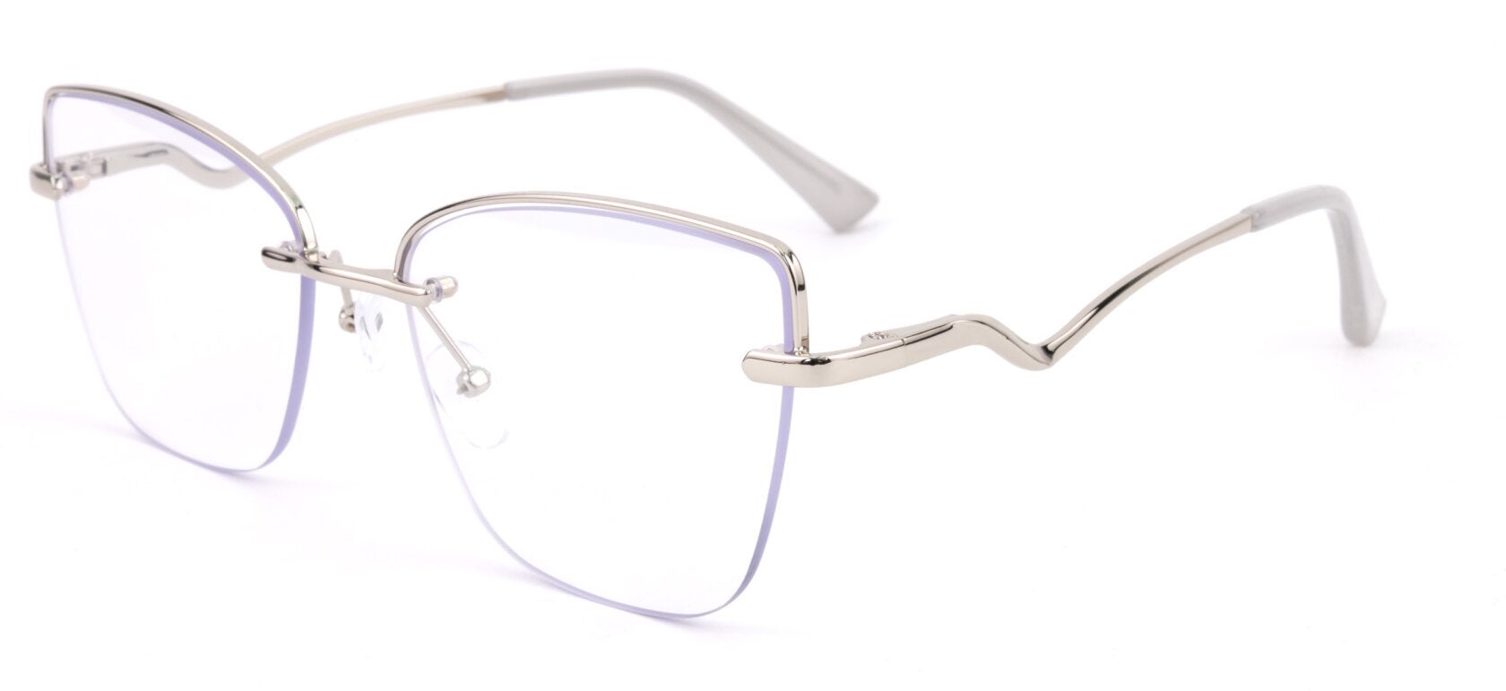 Montura de gafas con forma Semiagatada estilo de marco Al aire, de colores Plata, Con transparencia con soporte de nariz de plaquetas