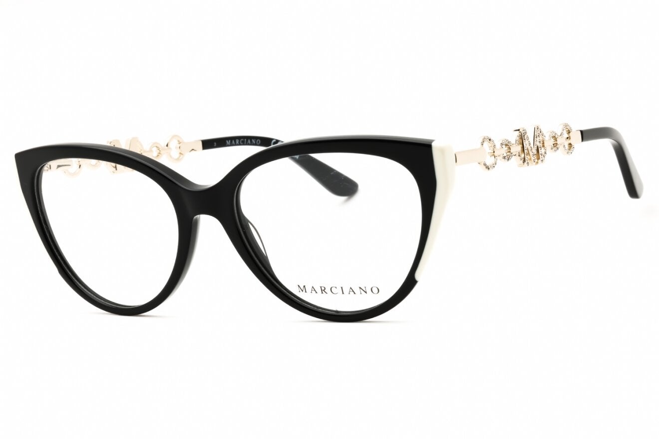 Montura de gafas marca GUESS BY MARCIANO con forma Agatada estilo de marco Completo, de colores Negro, Dorado