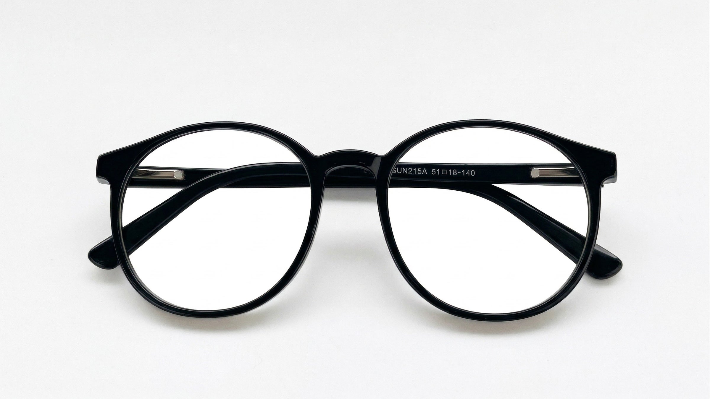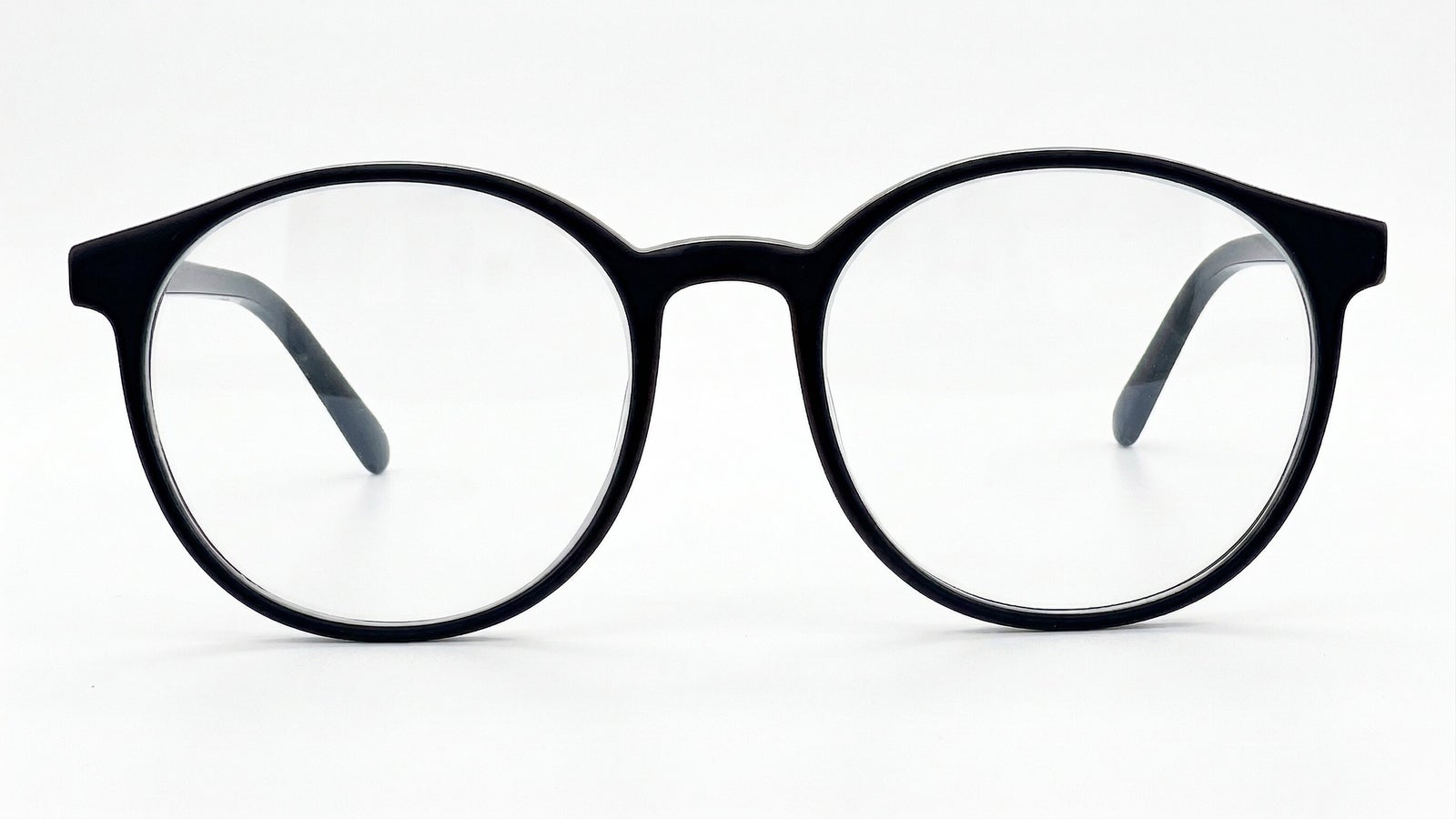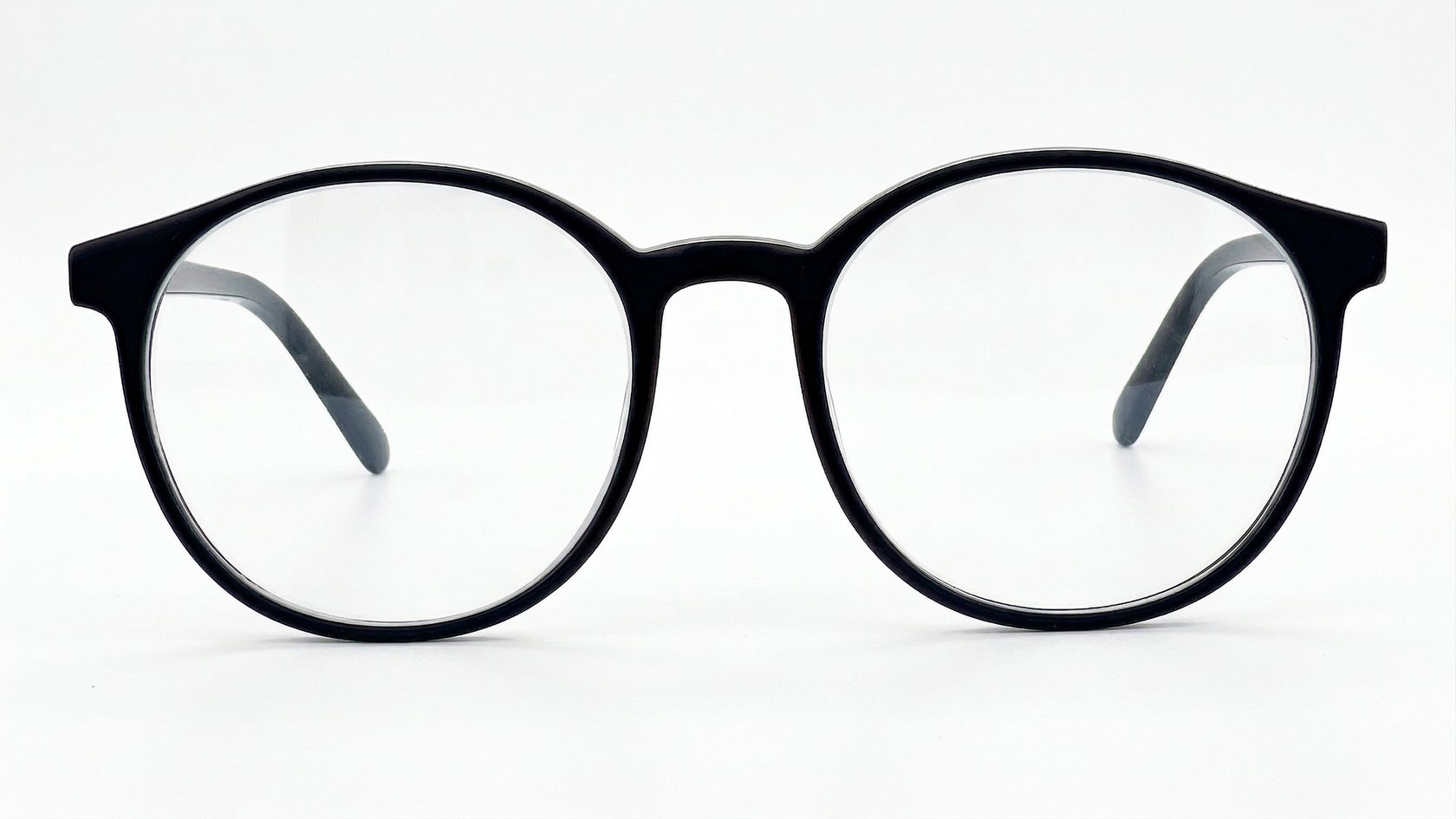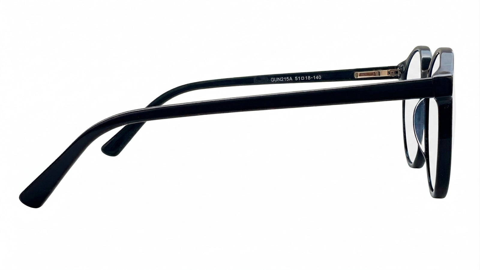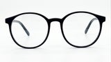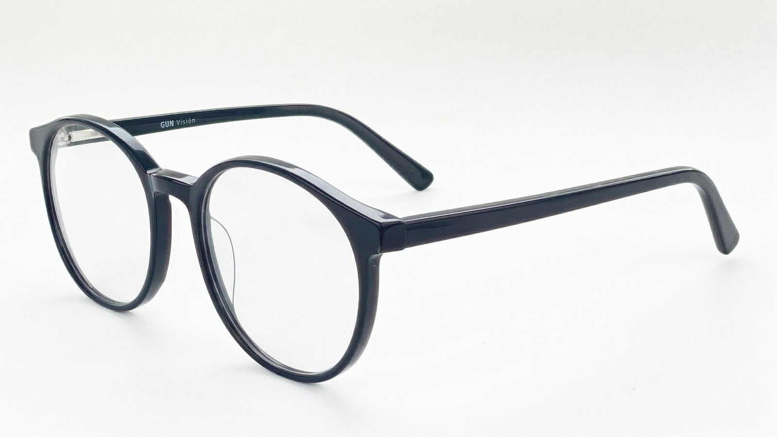 Montura unisex negra, de forma redonda, en material acetato, tamaño mediano, con puente anatómico y diseño clásico de frente delgado.
