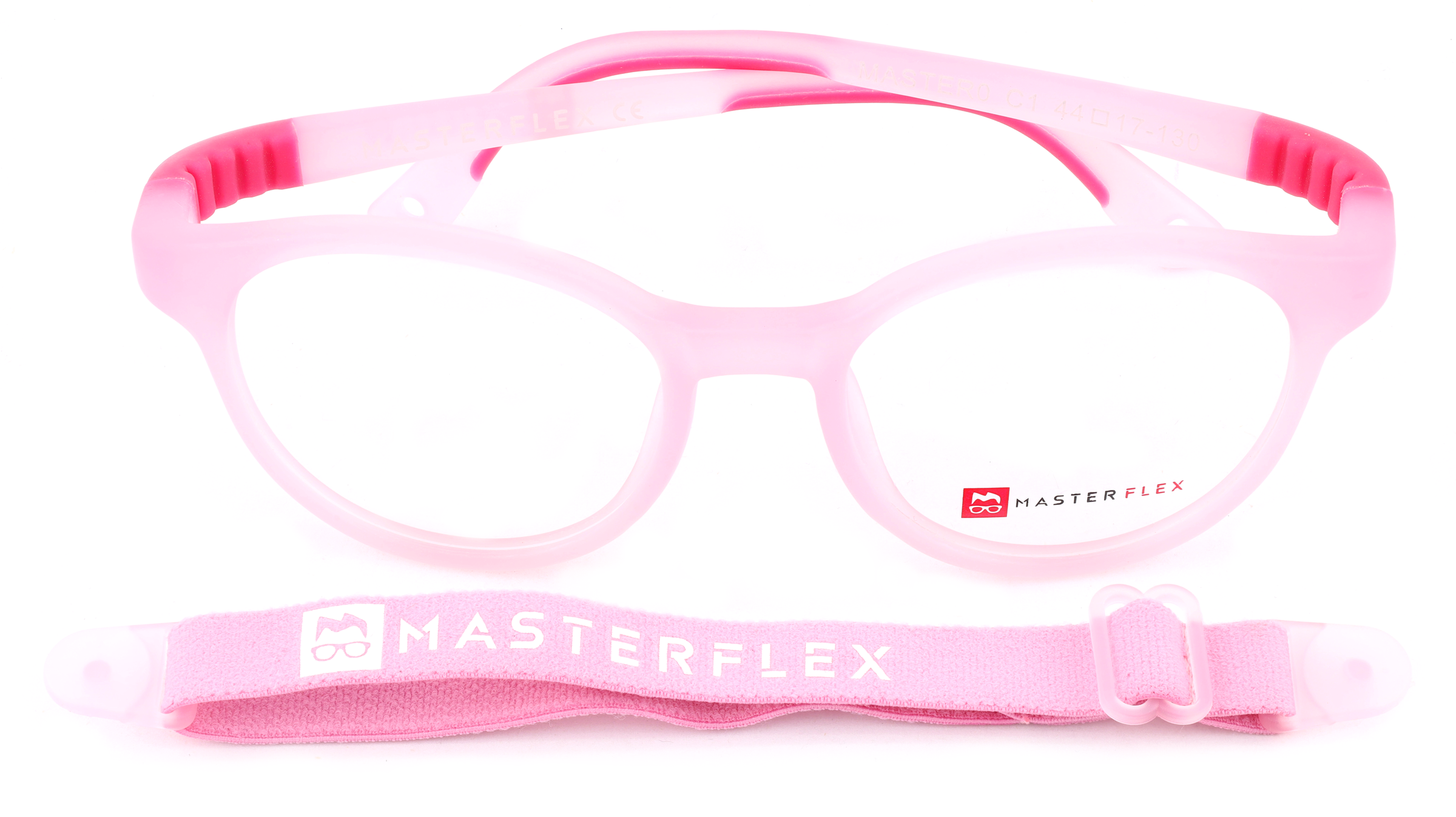Montura para Niña forma Redonda en materiales TR90, sistema Flex con Banda de Seguridad Ajustable en la parte Posterior