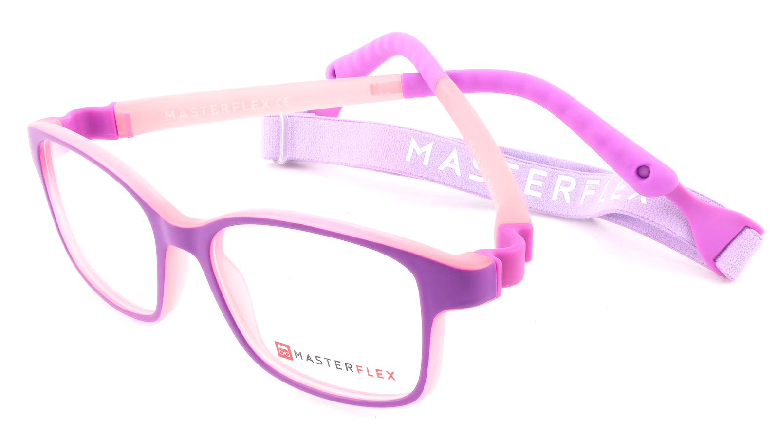 Montura para Niña forma Rectangular en materiales TR90, sistema Flex con Banda de Seguridad Ajustable en la parte Posterior