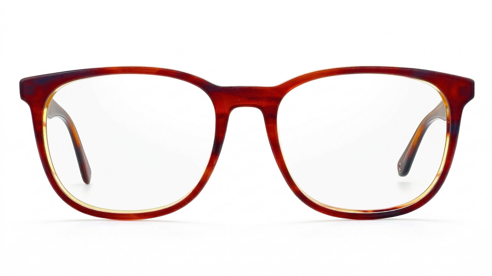 Montura unisex carey miel, de forma rectangular, tamaño mediano, elaborada en acetato, con puente anatómico y frente estilizado, ideal para un look clásico, cálido y moderno.