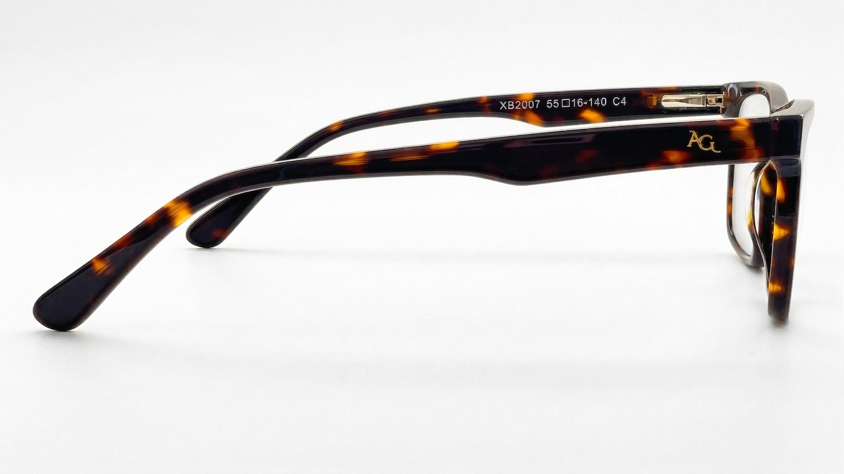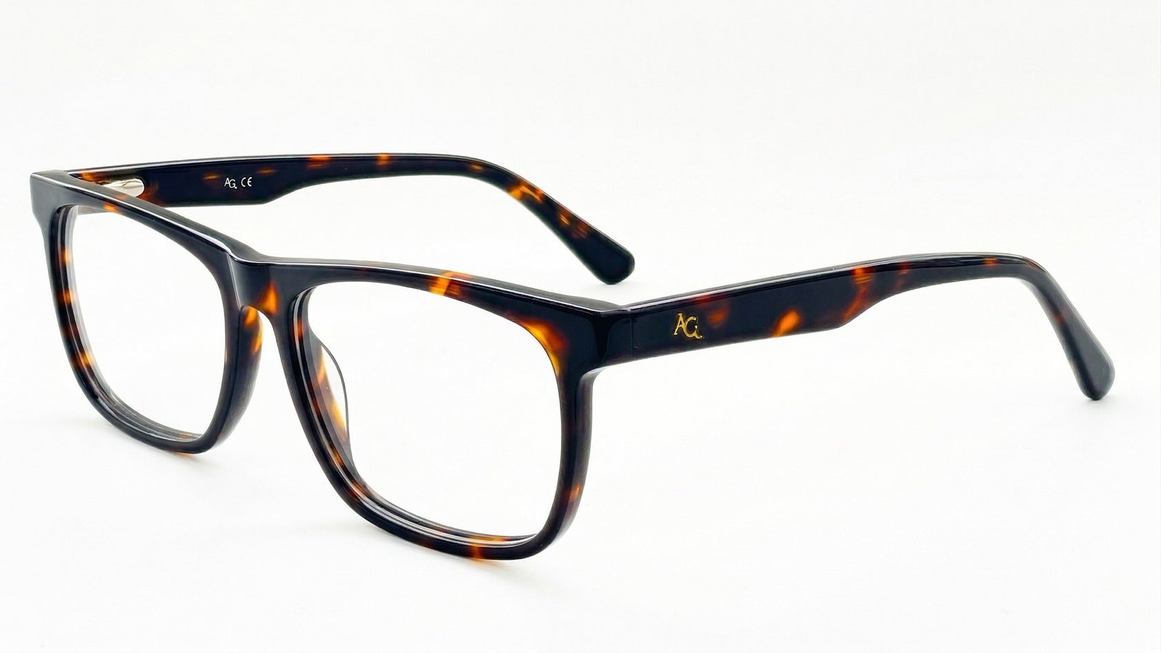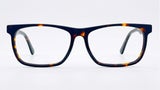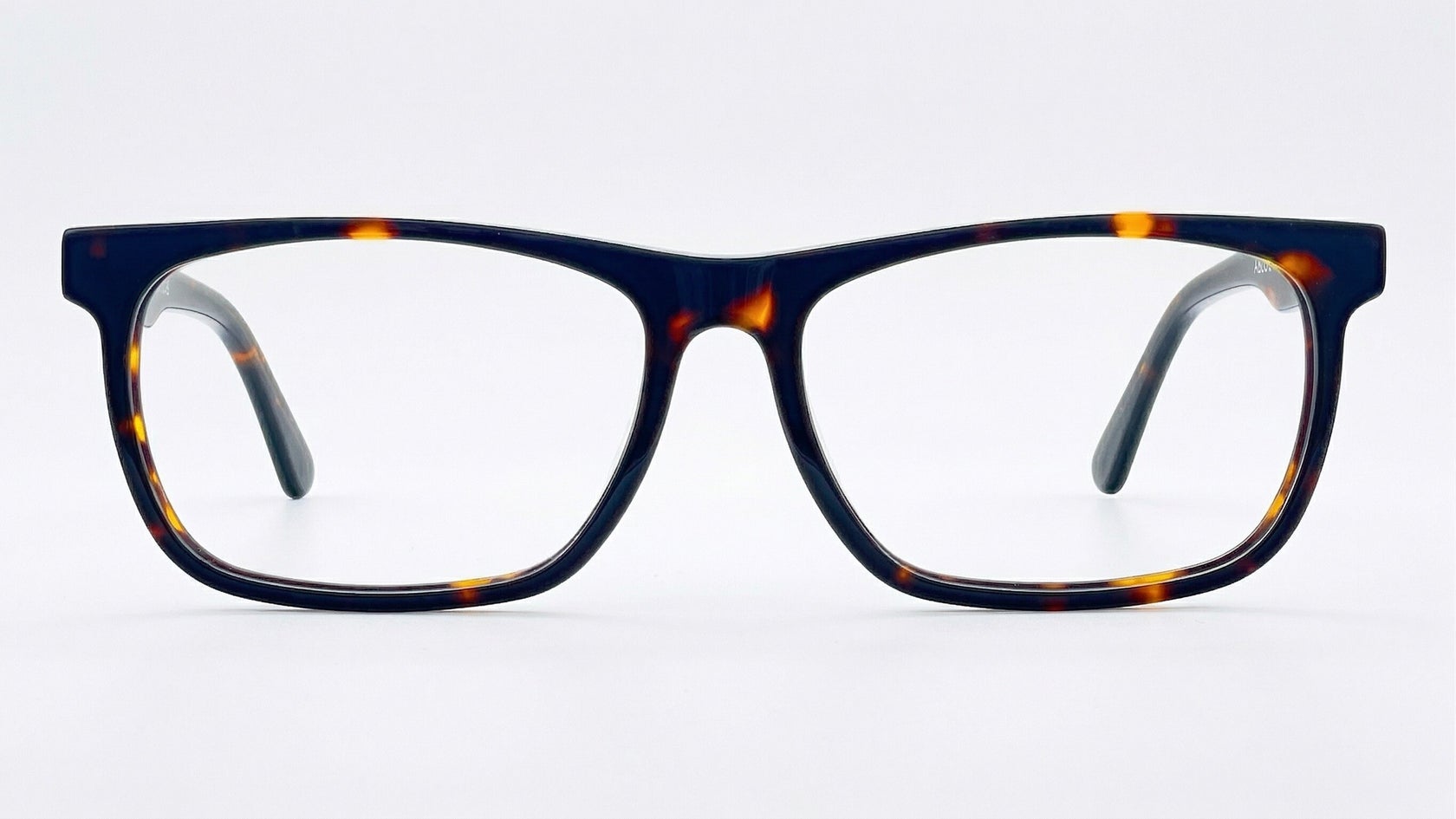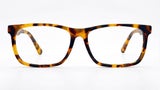 Montura masculina carey, de forma rectangular, tamaño ancho, elaborada en acetato, con puente anatómico, frente estilizado y diseño moderno, ideal para un look sobrio y versátil.