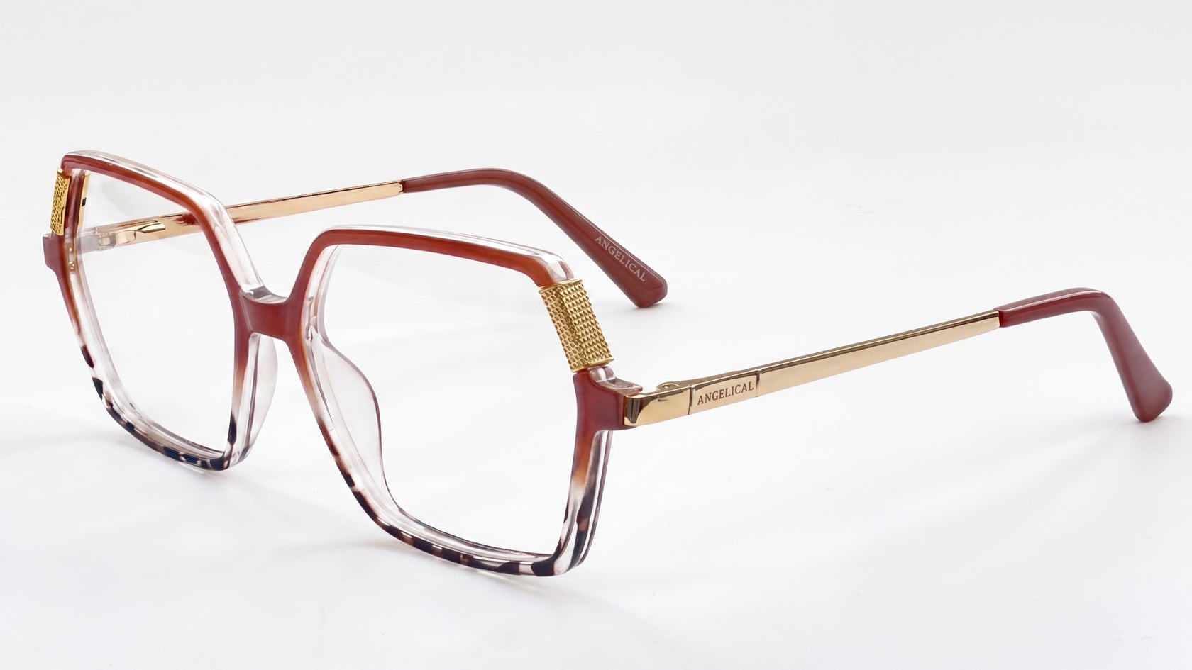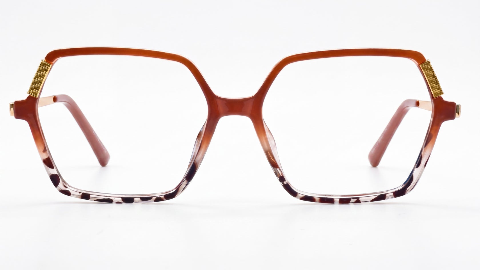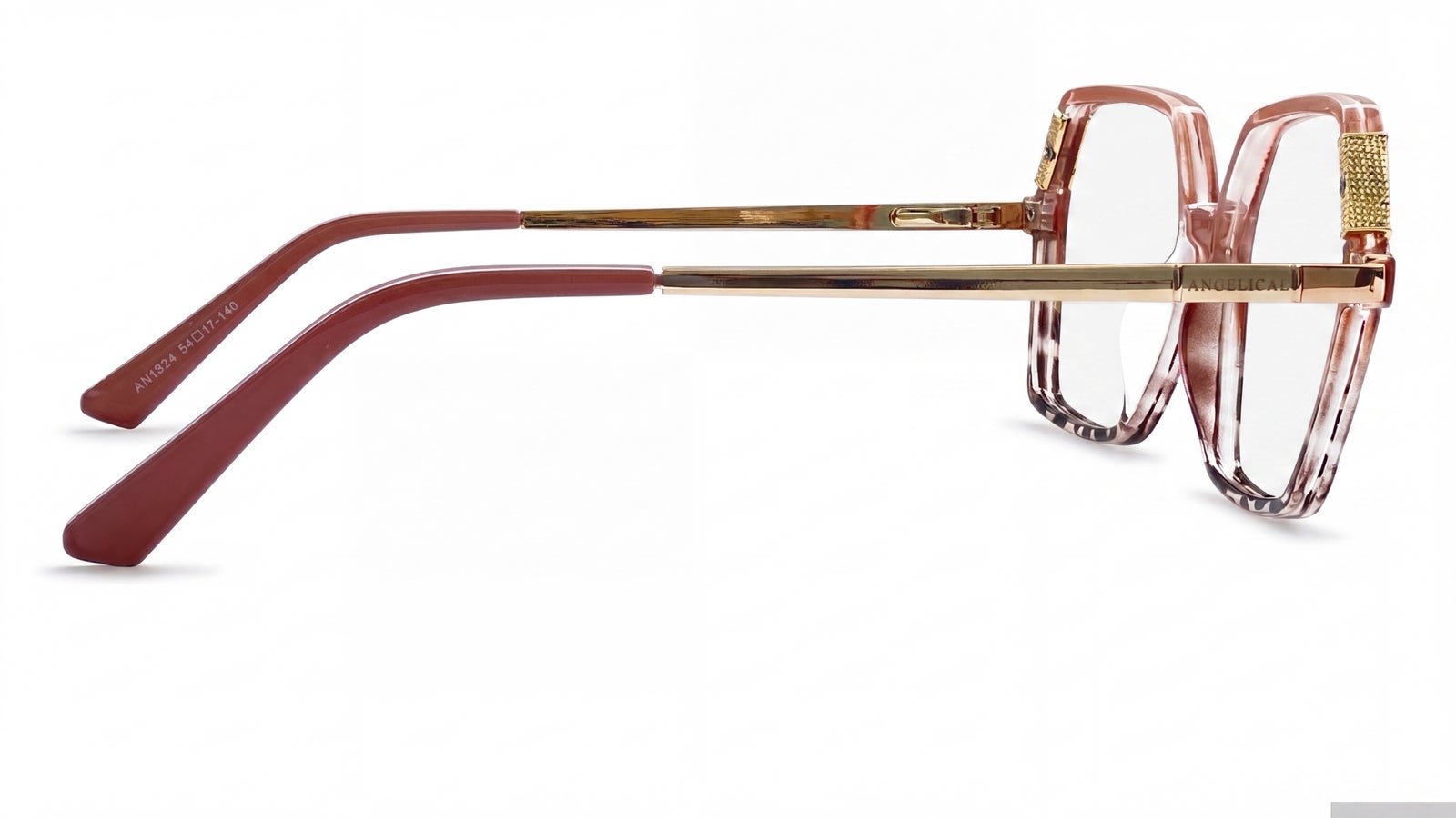 Animal print con nude rosado y dorado, de diseño elegante y femenino, con frente estilizado, detalle decorativo en los laterales y brazos delgados que le aportan un look sofisticado y distintivo.