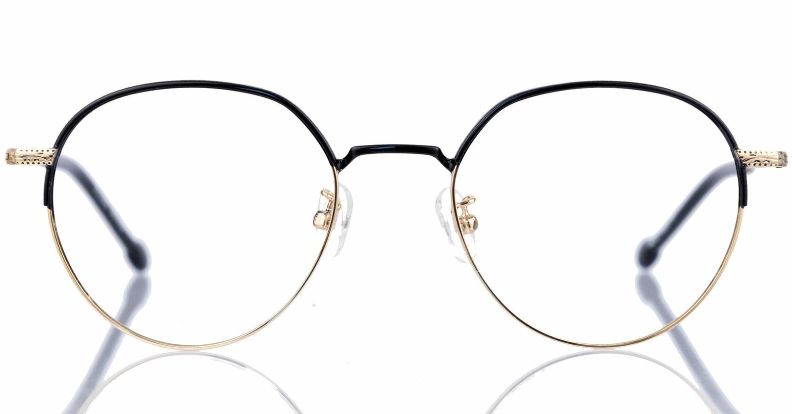 Montura de gafas con forma Ovalada estilo de marco Completo, de colores Negro, Dorado