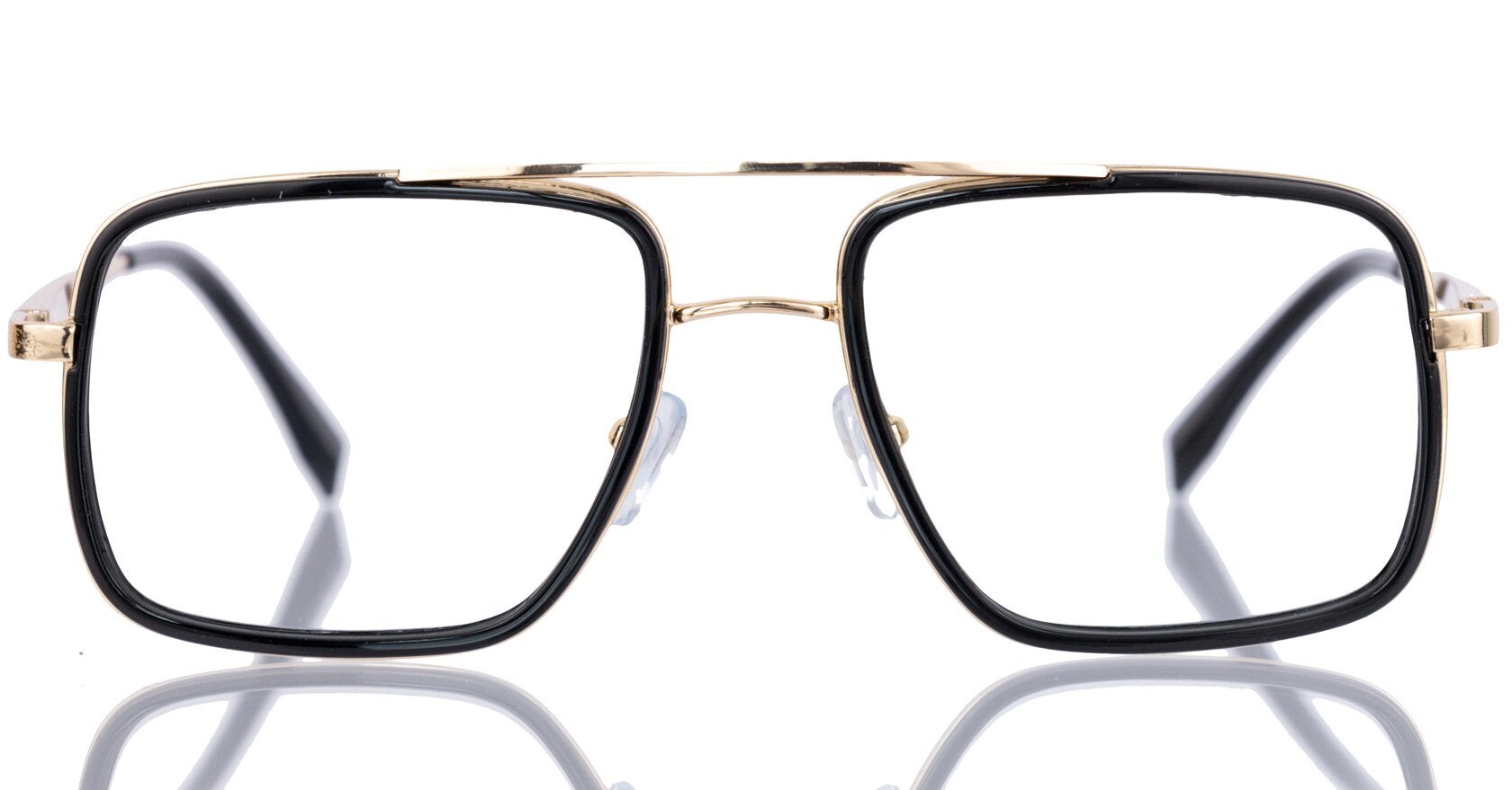 Montura de gafas con forma Hector Lavoe estilo de marco Completo, de colores Negro, Dorado