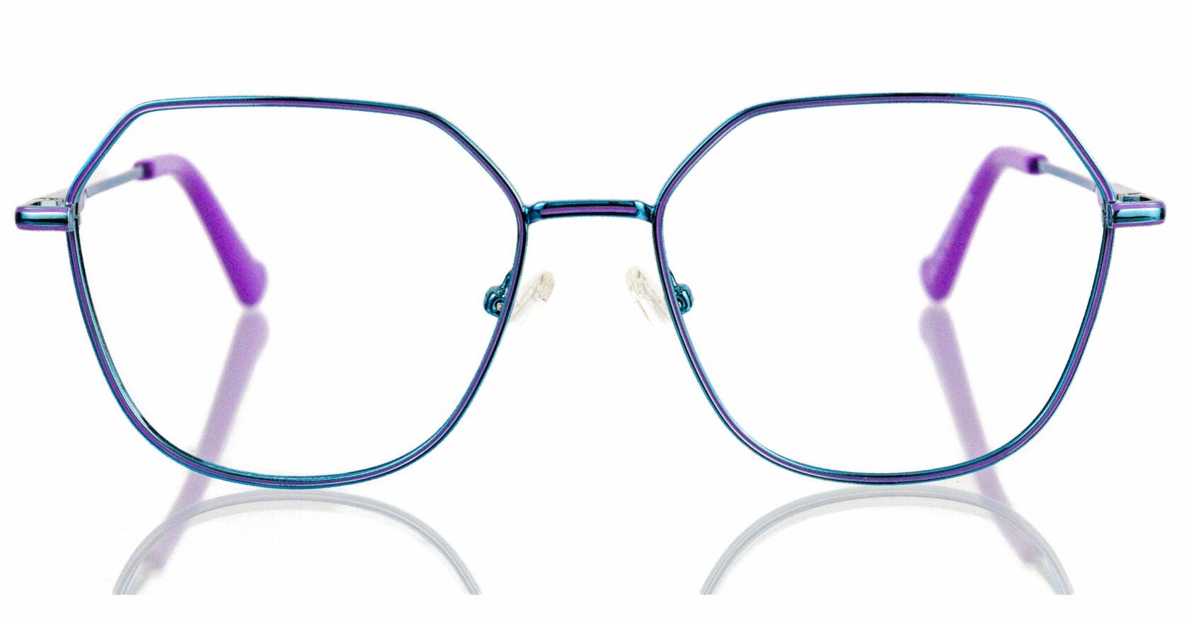 Gafas a la moda para mujer morado con azul tornasol ideal para caras redondas y ovaladas