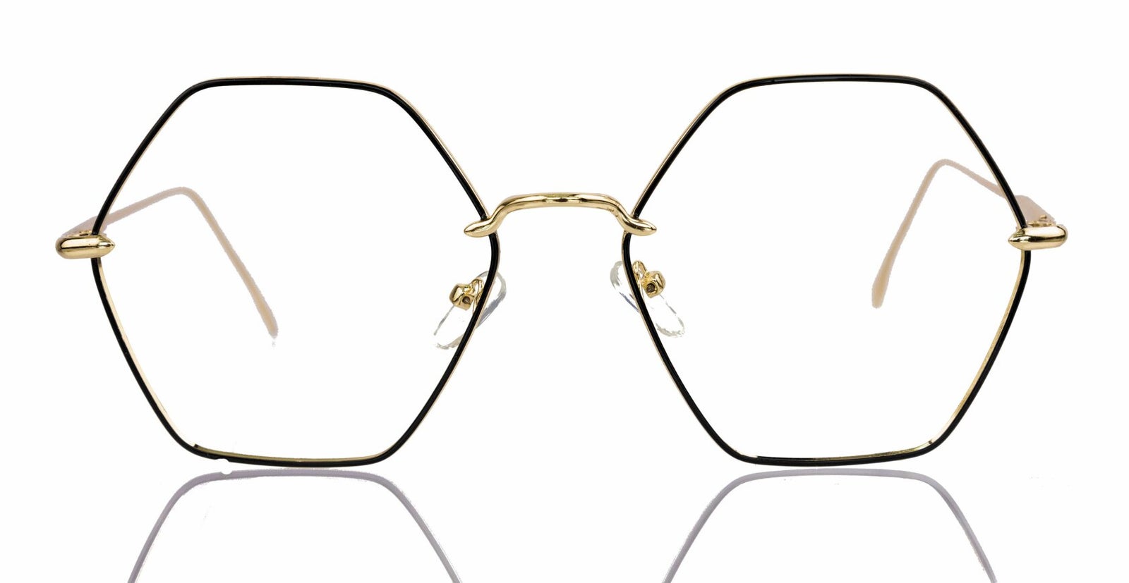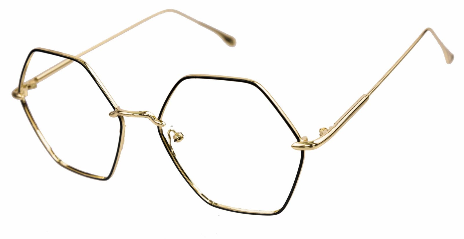 Montura de gafas con forma Hexagonales estilo de marco Completo, de colores Negro, Dorado