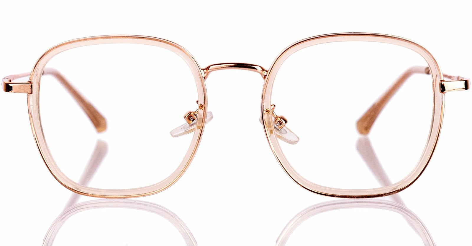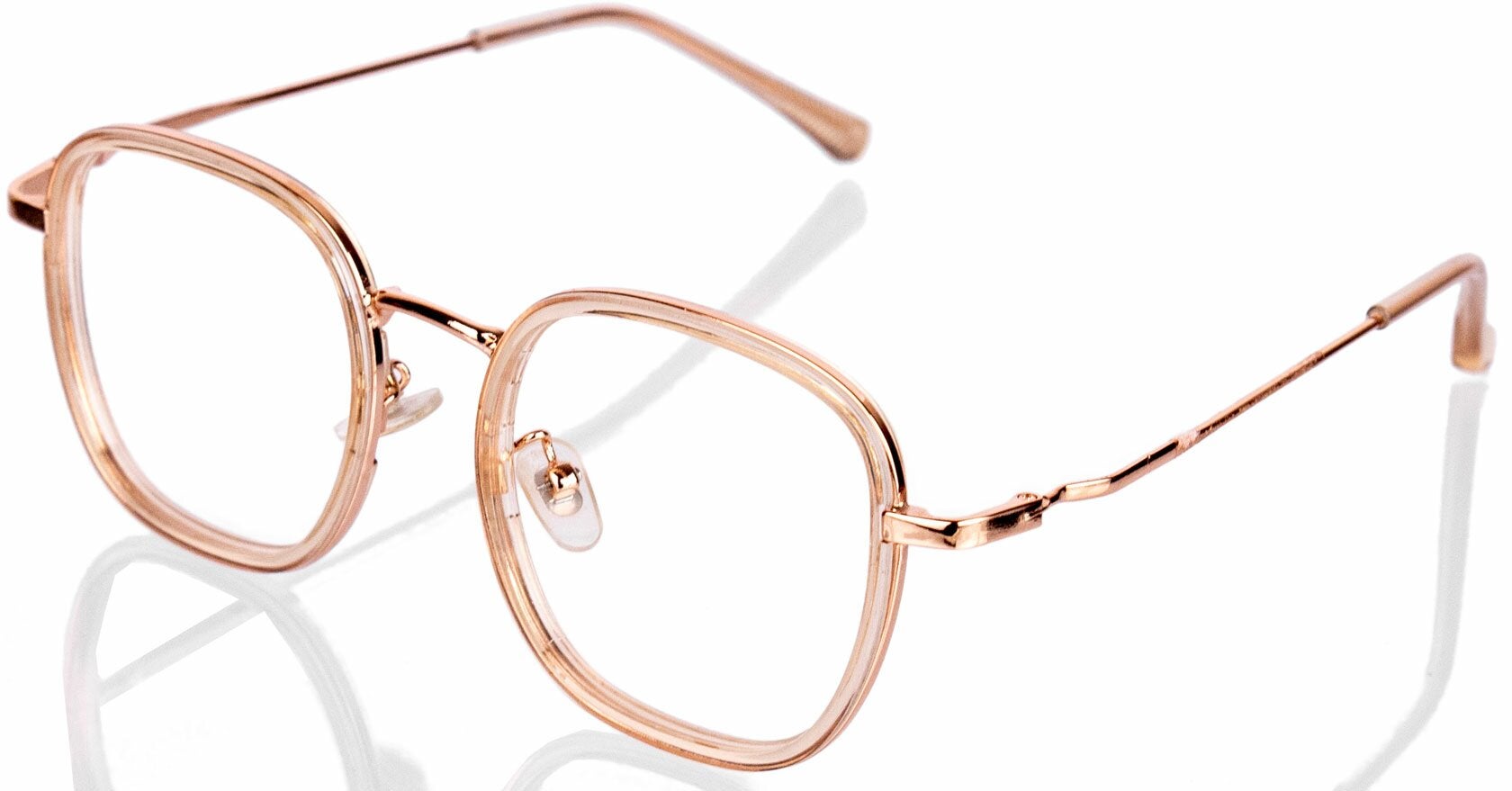 Montura de gafas con forma Hexagonales estilo de marco Completo, de colores Transparente, Crema, Dorado